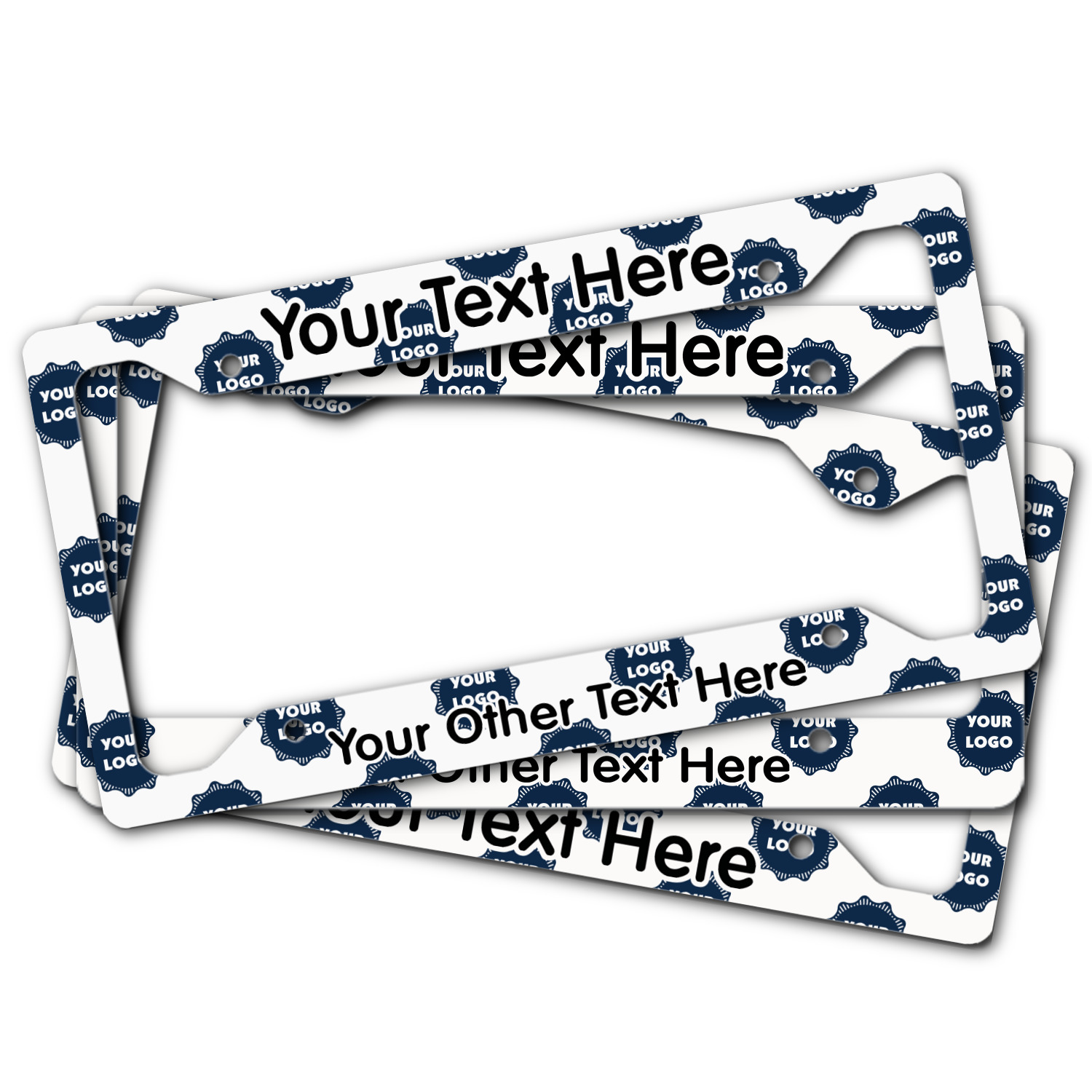 Each customizable license plate frame is made from a fine, yet sturdy aluminum material that measures approximately 6.5 x 12.15 inches, accommodating most standard license plates. The thickness allows the license plate frame to adhere completely to your license plate for a seamless look. We carry 3 styles of license plate frames to customize - Style A has texts on top and bottom, Style B offers texts on top and bottom as well as a full fill bottom border, and Style C offers text at the bottom only. The personalized license plate frame comes with four mounting holes for easy installation! We print each custom design across the frame with a glossy finish.