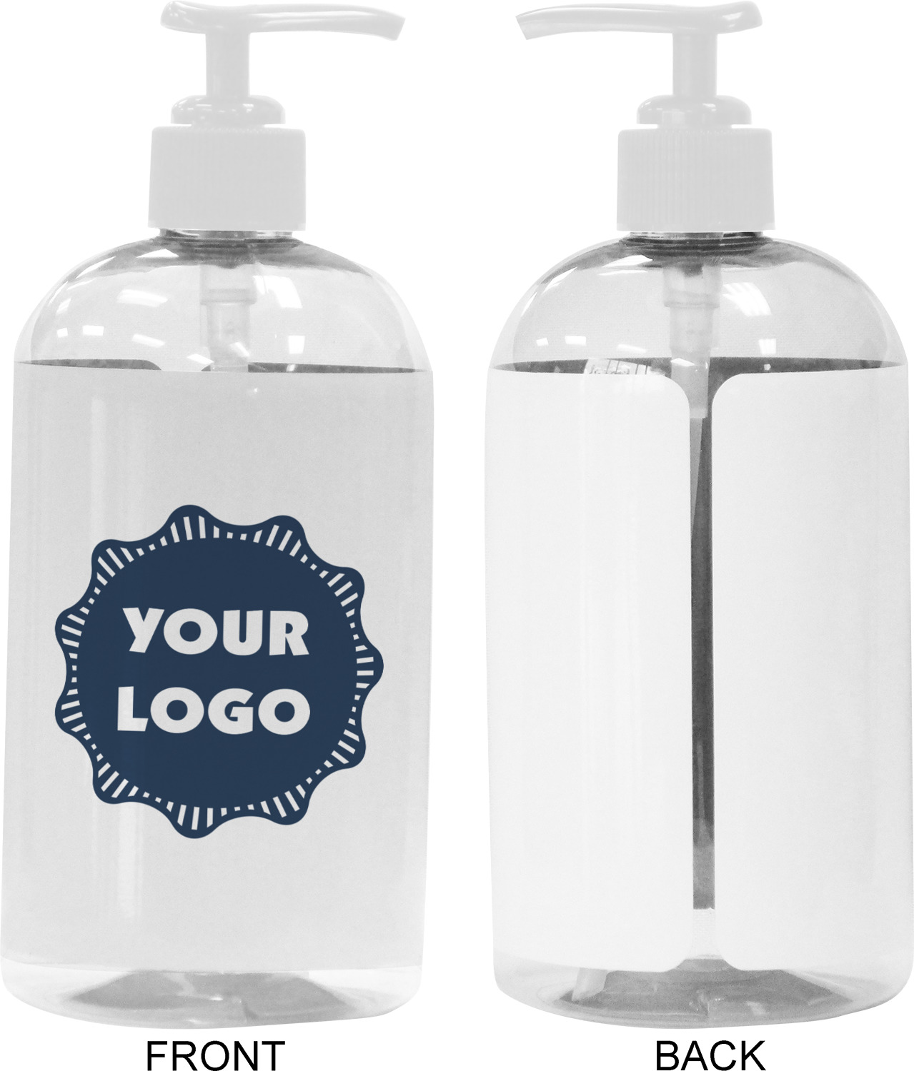 We adhere and wrap your custom printed design around the clear plastic bottle; there is a slight gap at the back for you to see the liquid level. Your design is printed on high gloss vinyl with eco-solvent inks and completely waterproof and will not fade or deteriorate over time. The vinyl is machine cut and adhered by hand to the clear plastic bottle.