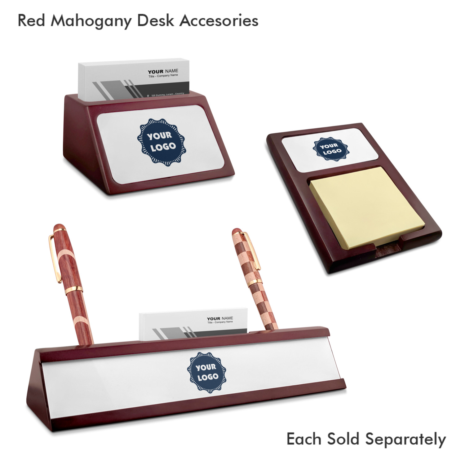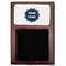Crafted from a fine mahogany, this post it note holder is in the shade of a dark, cherry color. The dispenser itself is about 4.25 by 6.25 by 0.75 inches. You can place your 3 by 3 inch sticky notes in the indentation below the nameplate. We print your customization onto the nameplate that rests above the velvety indentation.