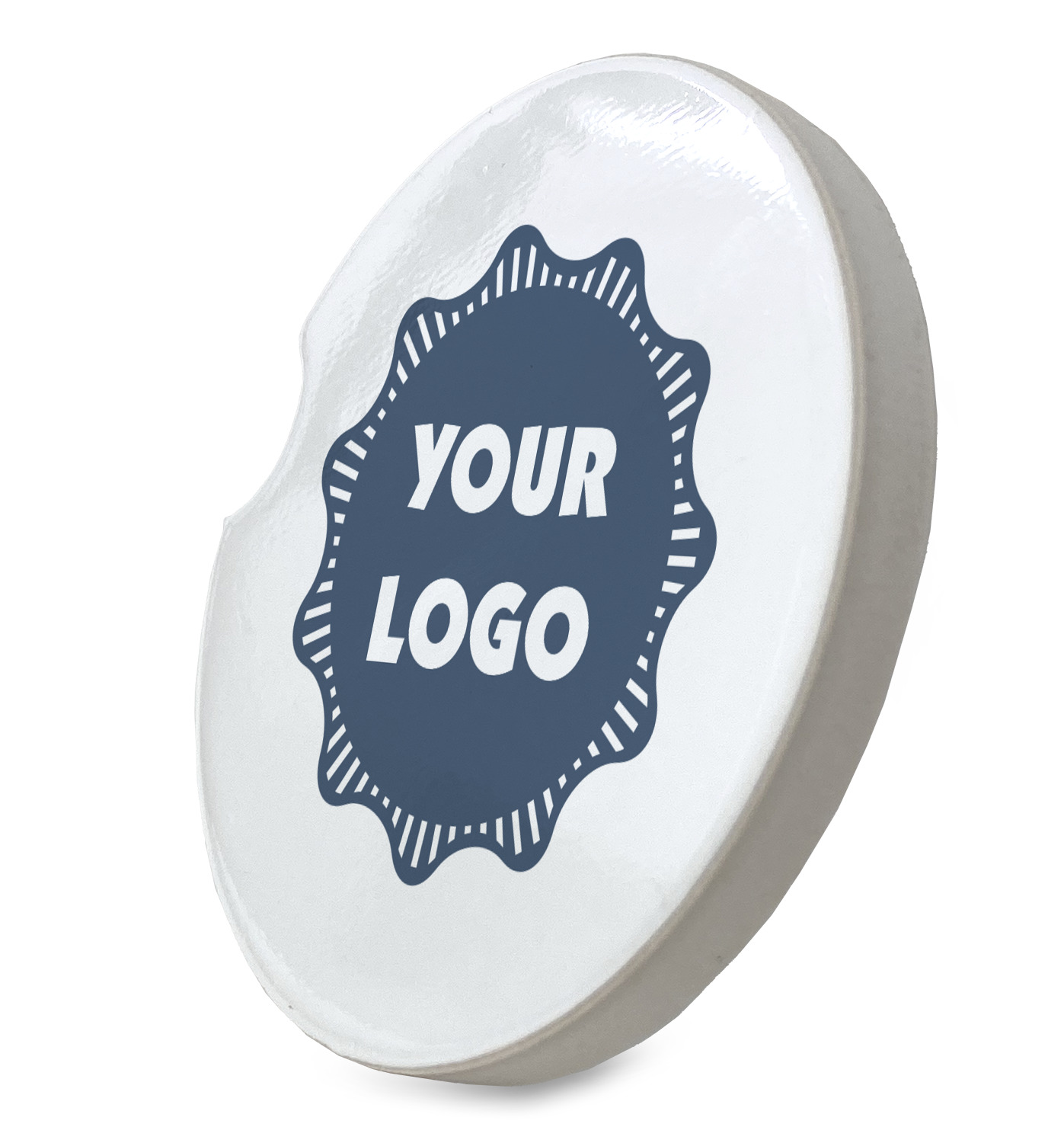 These sandstone coasters are round, robust, and feature a smoothed glossy side to exhibit your customized design. With a 2.5 inch diameter, these stone coasters will fit snugly inside most cup holders. This model also features a semi-circle shaped divot that allows for easy removal, despite the tight fit. You can purchase these car cup holder coasters in a pair, or singularly, depending on your needs.