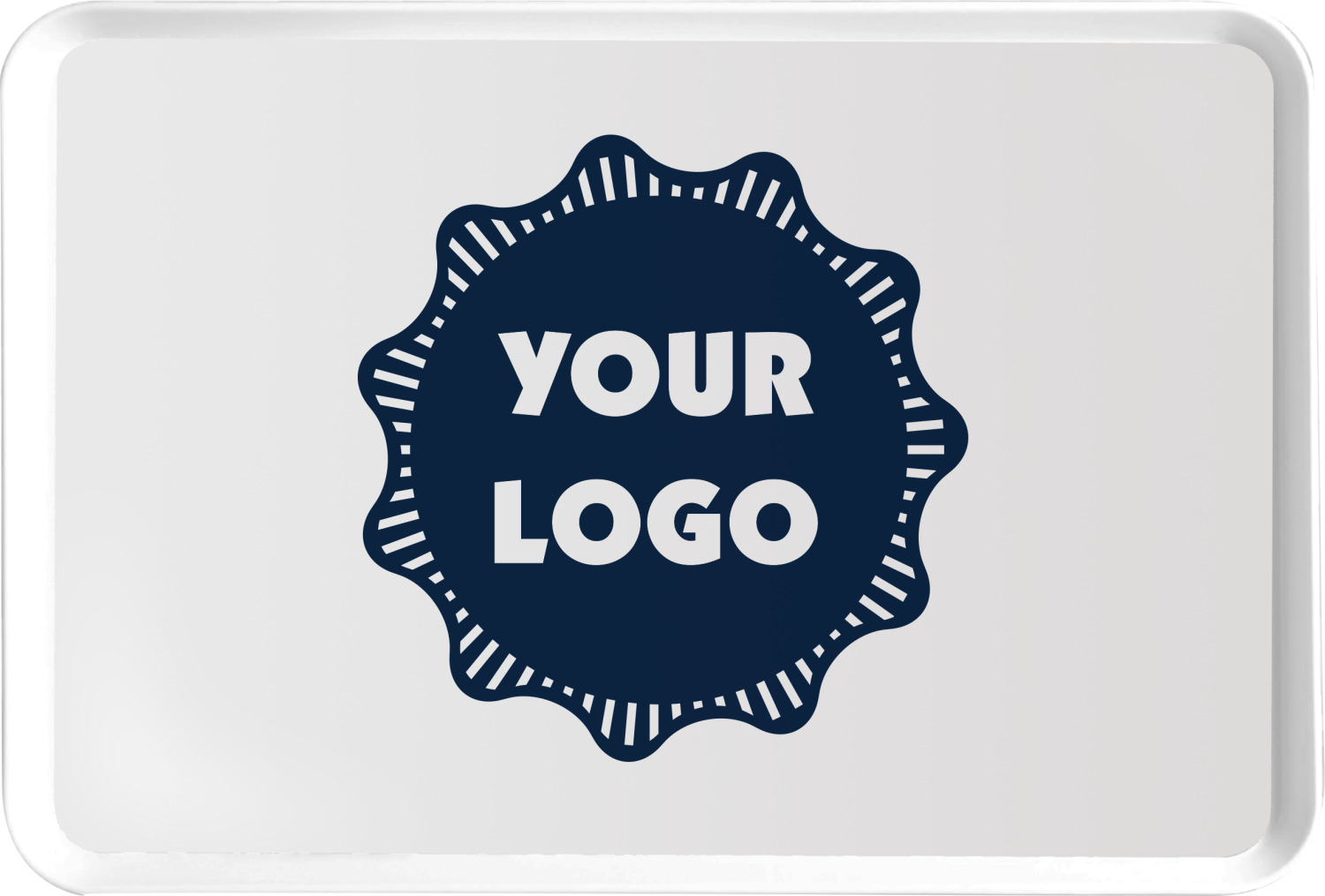 Made from a heavy melamine, these decorative trays are break resistant and are BPA free. At 14" x 9.25", these serving dishes are spacious enough to accommodate several drinks, bowls, or more. The tray features ridges underneath that allow for a sturdy stance upon any table or counter-top. We display your customization at the bottom of the tray's interior, while the remaining sides of the tray are a chic white.