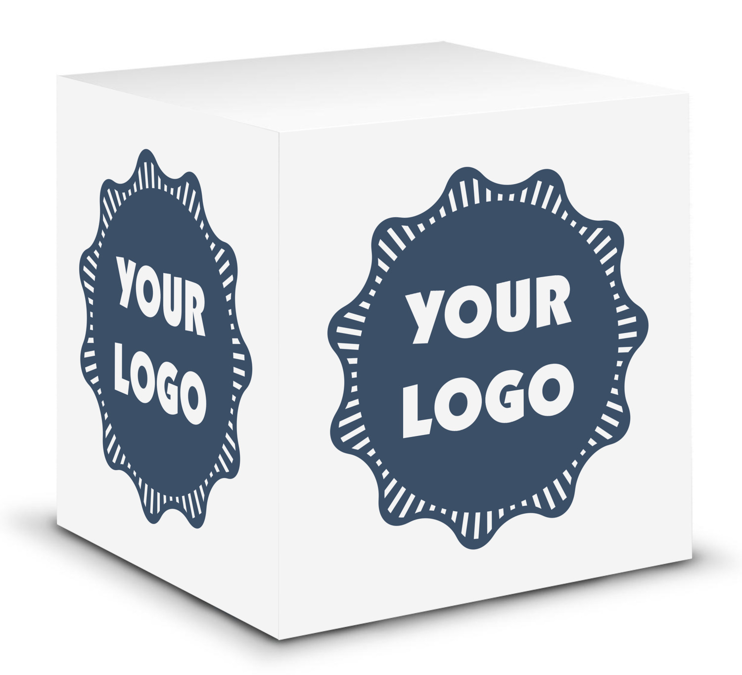 This note cube features 700 sheets of matte, white paper. Each sheet measures at 3.5 by 3.5 inches and has an adhesive strip at its top. Your personalized design is displayed on all four edges of the sticky pad.