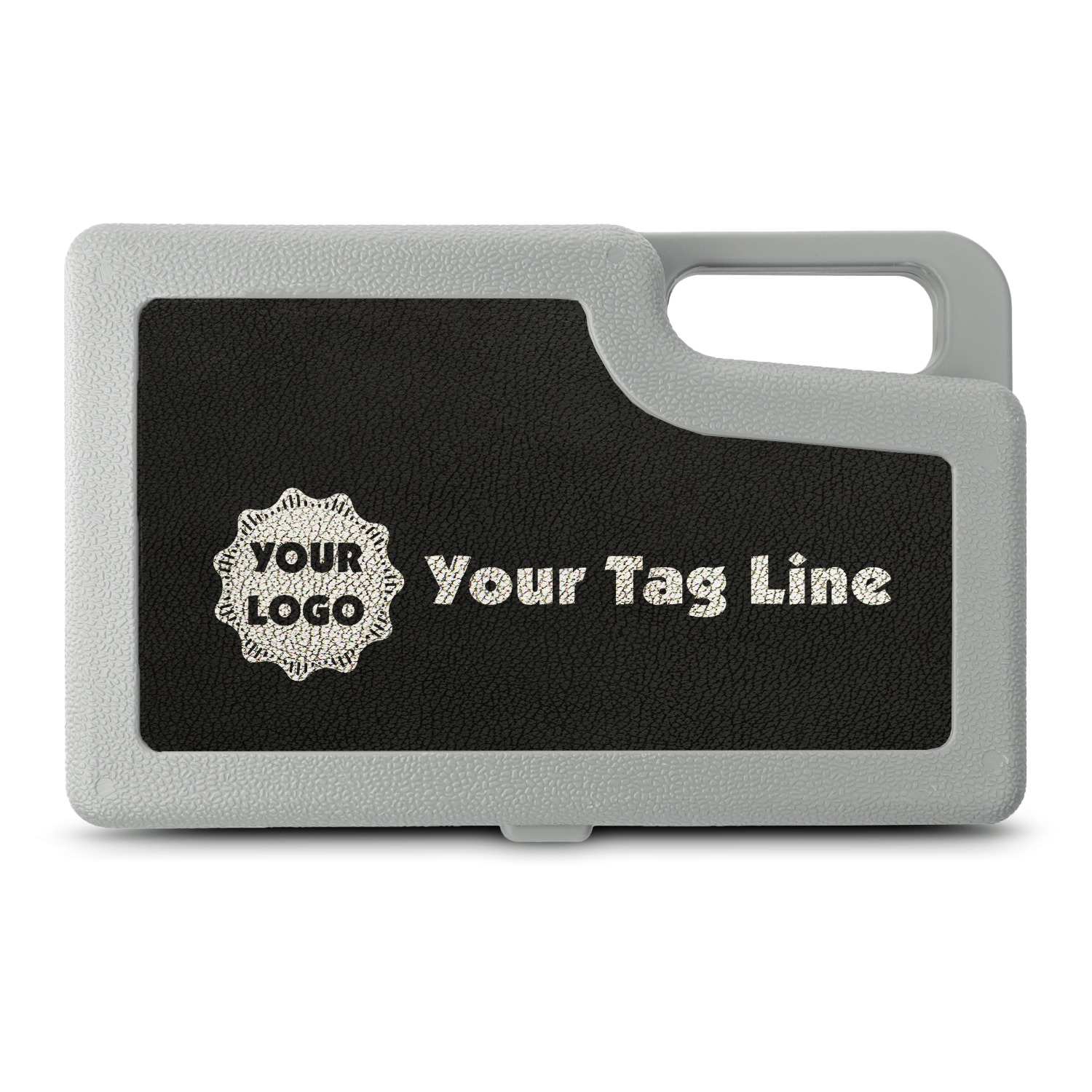 In a hard shell plastic case which measures 12in long by 7.5in wide and 3in tall, this tool kit is the perfect size to easily fit in a trunk or small compartment without taking up too much room. With the black faux leather on the outside engraved with your choice of personalization you can make this tool kit to be uniquely yours to ensure it stays with you for a lifetime!