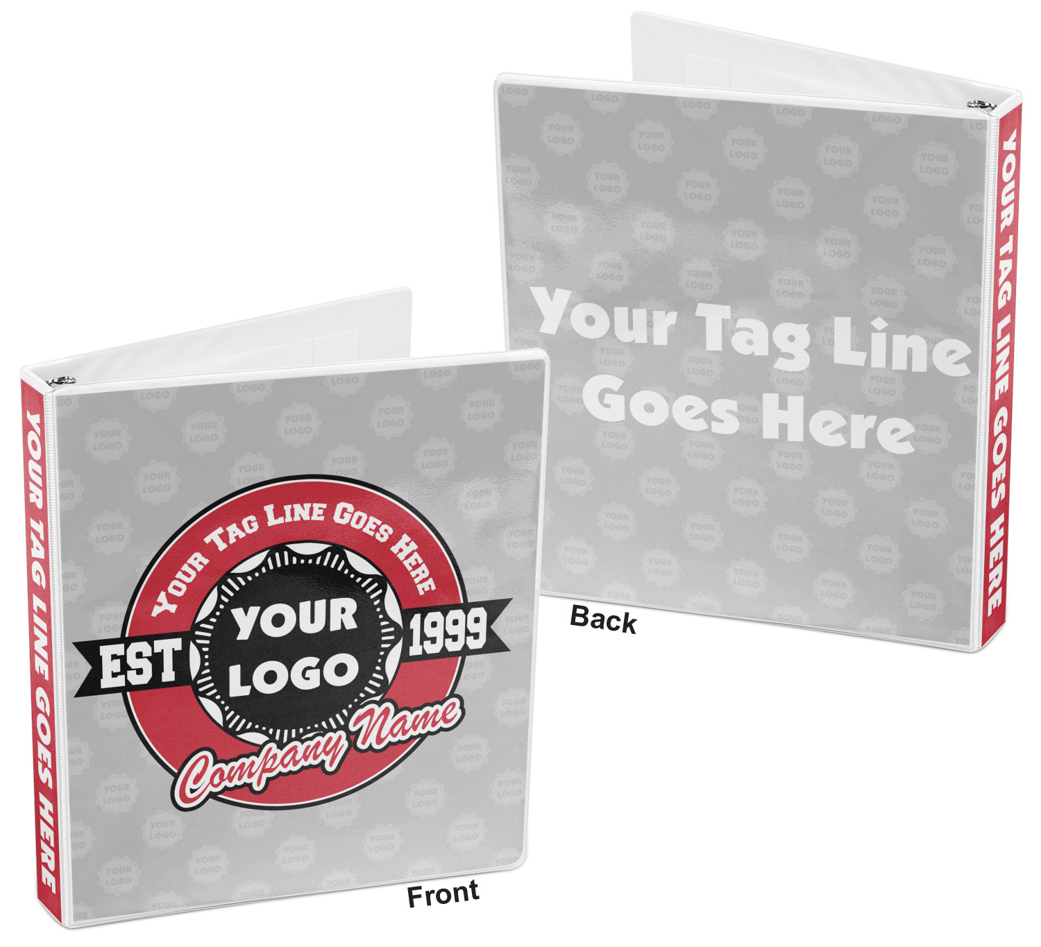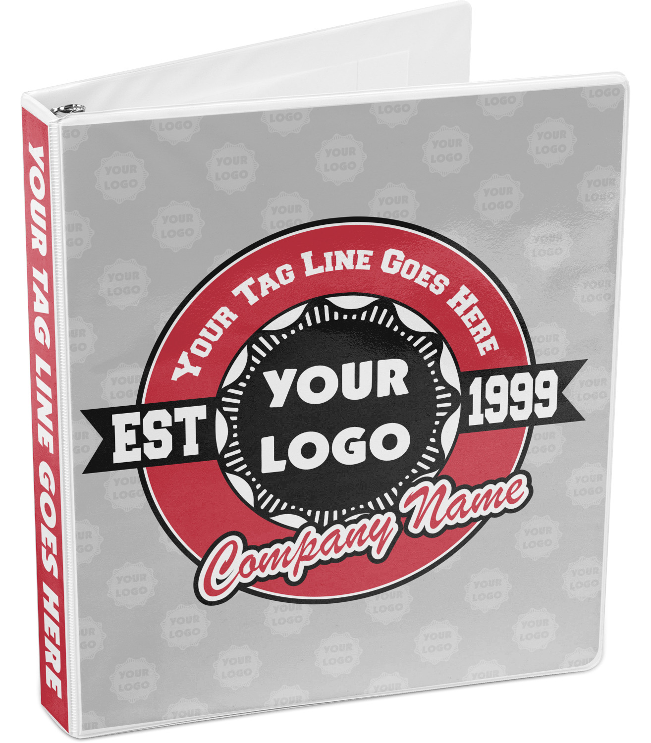 This design has black, red, and grey as its main colors, which are able to be changed to your company colors with a click of a button. You are able to upload your logo right into our system in order to use it. We have set up a fun company logo that you are even able to simply add your logo to. The background has a subtle logo pattern, which you can upload as a png or svg of your own logo. All colors, graphics, and text are changable in order to suit your personal business. Use your logo and your tagline on all kinds of products to get your business known.