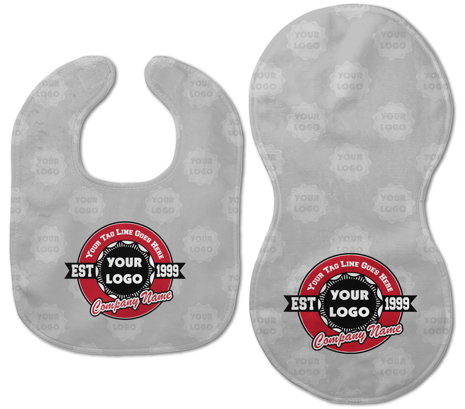 Both our baby bib and burp pad are made up of soft, microfiber velour with a cotton backing. The comfortable and plush material of our bib and burp set is perfect for both baby and parent. We print your design on the microfiber velour face fabric with baby safe ink on your customizable bib and burp cloth to ensure safety for the little one! Our drool bib also comes with a Velcro clasp for safe and easy wear while the burp cloth is a unique peanut shape that perfectly hugs over the shoulder.