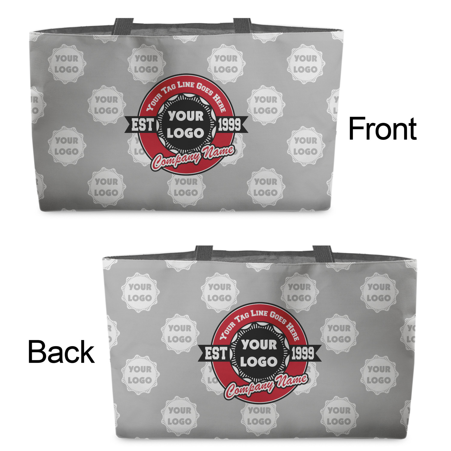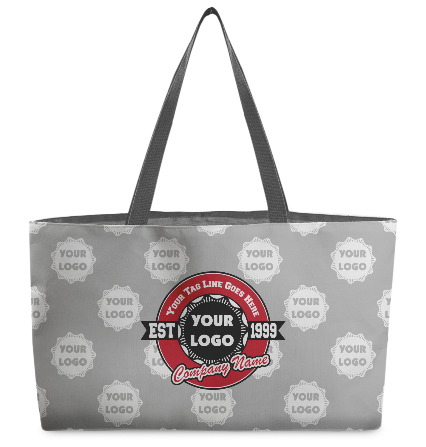 This design has black, red, and grey as its main colors, which are able to be changed to your company colors with a click of a button. You are able to upload your logo right into our system in order to use it. We have set up a fun company logo that you are even able to simply add your logo to. The background has a subtle logo pattern, which you can upload as a png or svg of your own logo. All colors, graphics, and text are changable in order to suit your personal business. Use your logo and your tagline on all kinds of products to get your business known.