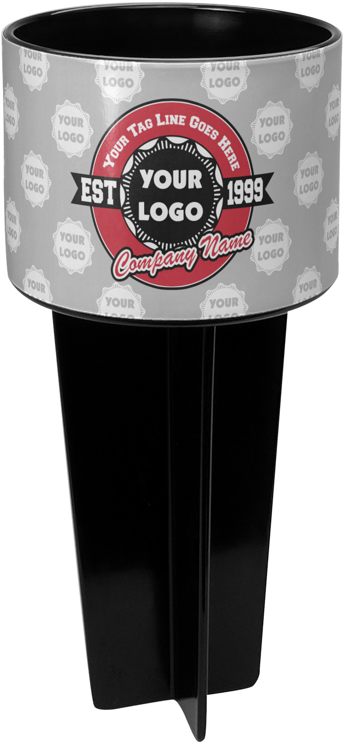 This cup holder has a large stake at its bottom that anchors it to the sand or ground below, while the cup holder rests above the stake. The entire drink holder is made of durable plastic and displays your customization around the cup holder portion. We sell these personalized beach spikers in two different colors: black and white.