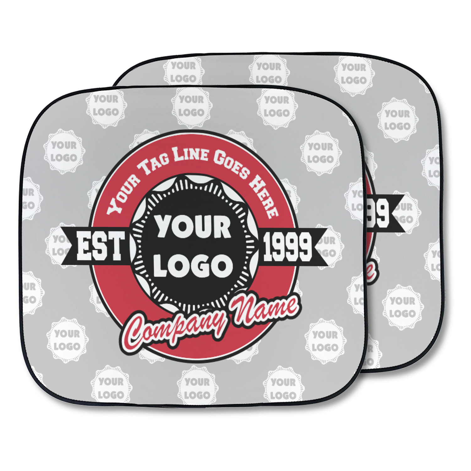 This design has black, red, and grey as its main colors, which are able to be changed to your company colors with a click of a button. You are able to upload your logo right into our system in order to use it. We have set up a fun company logo that you are even able to simply add your logo to. The background has a subtle logo pattern, which you can upload as a png or svg of your own logo. All colors, graphics, and text are changable in order to suit your personal business. Use your logo and your tagline on all kinds of products to get your business known.