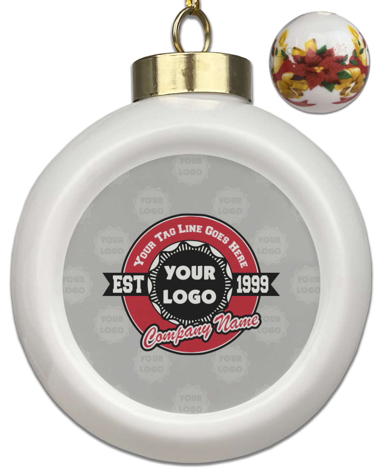 Our Christmas ornaments are a unique ceramic ball shape with a twist as it has a flat face to display your custom design! Select from one of our two design types - Christmas Tree or Poinsettia Garland - to adorn the curved back of your personal design. Each ornament measures 3H x 2.5W x 2D accompanied with a gold string accent for finishing touches to hang on your beautiful Christmas tree!