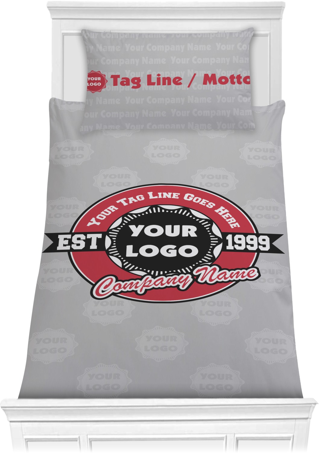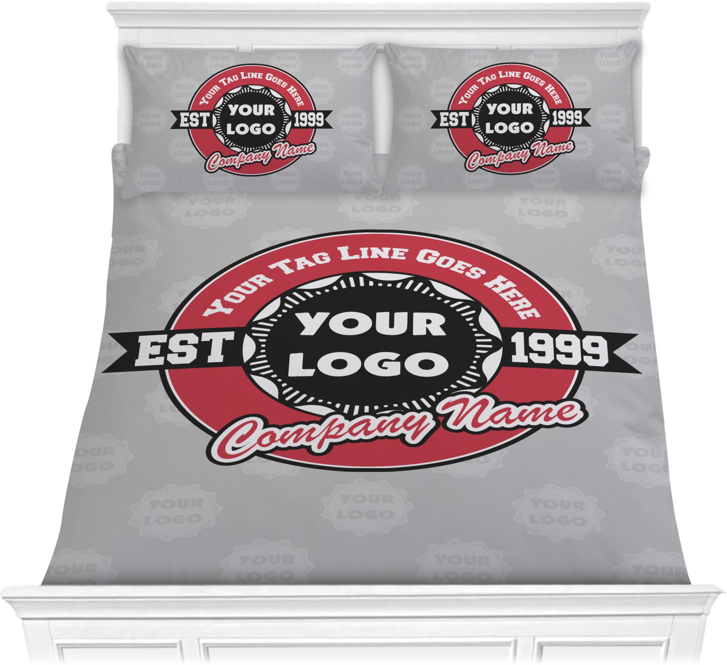 This design has black, red, and grey as its main colors, which are able to be changed to your company colors with a click of a button. You are able to upload your logo right into our system in order to use it. We have set up a fun company logo that you are even able to simply add your logo to. The background has a subtle logo pattern, which you can upload as a png or svg of your own logo. All colors, graphics, and text are changable in order to suit your personal business. Use your logo and your tagline on all kinds of products to get your business known.