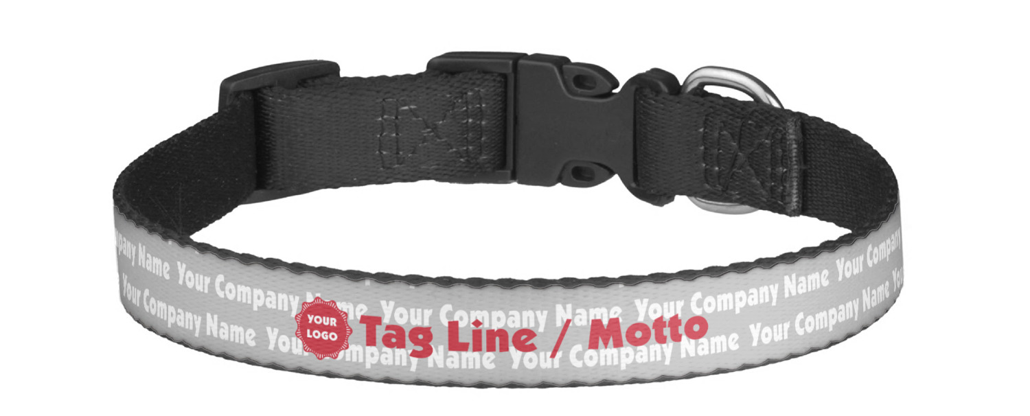 This sturdy collar, made from a durable nylon weave, will outlive your dog's episodes of excited tugging and pulling. Courtesy of its thick plastic buckle and adjuster, this collar is adjustable and accommodating of any dog. Structurally, the collar is a single piece of nylon weave that is sewn together, and features a solid metal loop where you can attach a leash or dog tag. We print and display your dog's name and pattern across the middle of the personalized dog collar.