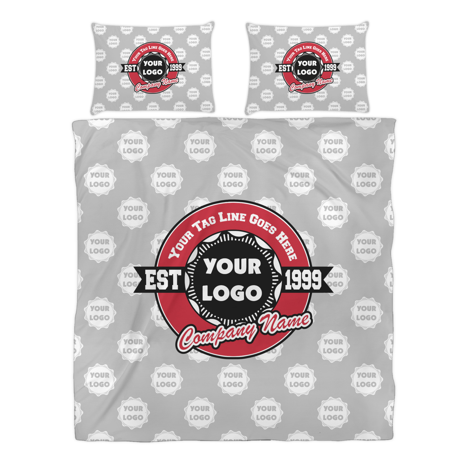 This design has black, red, and grey as its main colors, which are able to be changed to your company colors with a click of a button. You are able to upload your logo right into our system in order to use it. We have set up a fun company logo that you are even able to simply add your logo to. The background has a subtle logo pattern, which you can upload as a png or svg of your own logo. All colors, graphics, and text are changable in order to suit your personal business. Use your logo and your tagline on all kinds of products to get your business known.