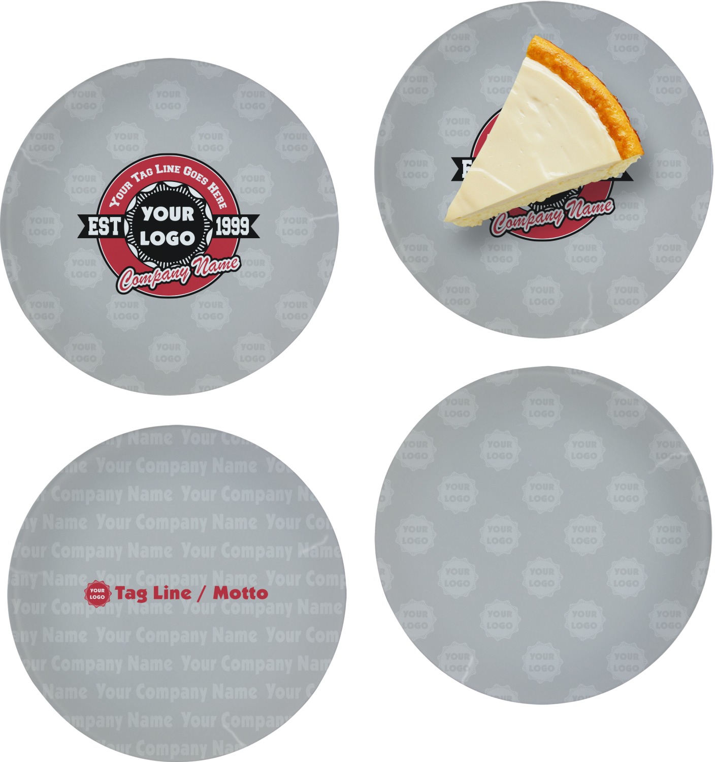 This design has black, red, and grey as its main colors, which are able to be changed to your company colors with a click of a button. You are able to upload your logo right into our system in order to use it. We have set up a fun company logo that you are even able to simply add your logo to. The background has a subtle logo pattern, which you can upload as a png or svg of your own logo. All colors, graphics, and text are changable in order to suit your personal business. Use your logo and your tagline on all kinds of products to get your business known.