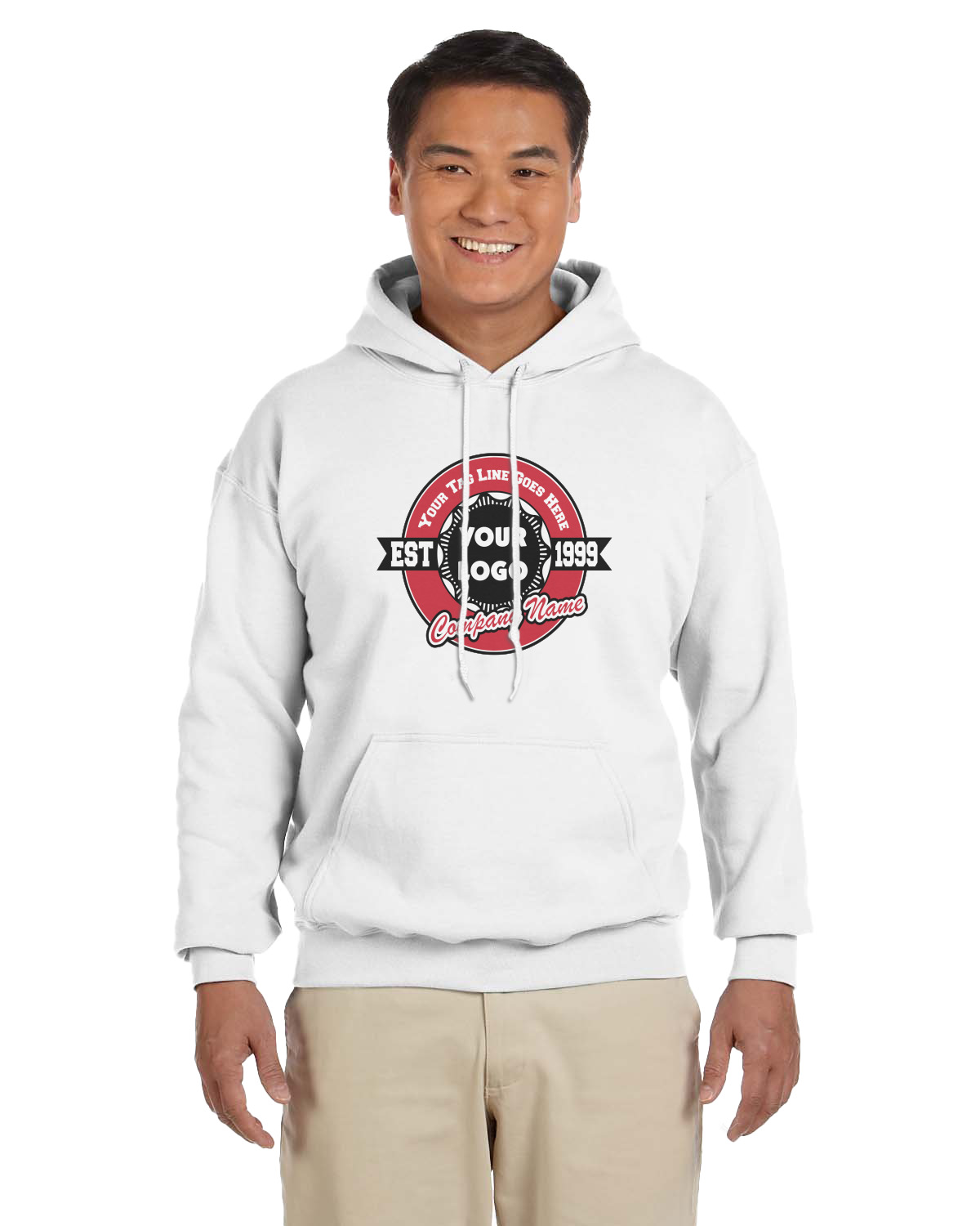 This design has black, red, and grey as its main colors, which are able to be changed to your company colors with a click of a button. You are able to upload your logo right into our system in order to use it. We have set up a fun company logo that you are even able to simply add your logo to. The background has a subtle logo pattern, which you can upload as a png or svg of your own logo. All colors, graphics, and text are changable in order to suit your personal business. Use your logo and your tagline on all kinds of products to get your business known.