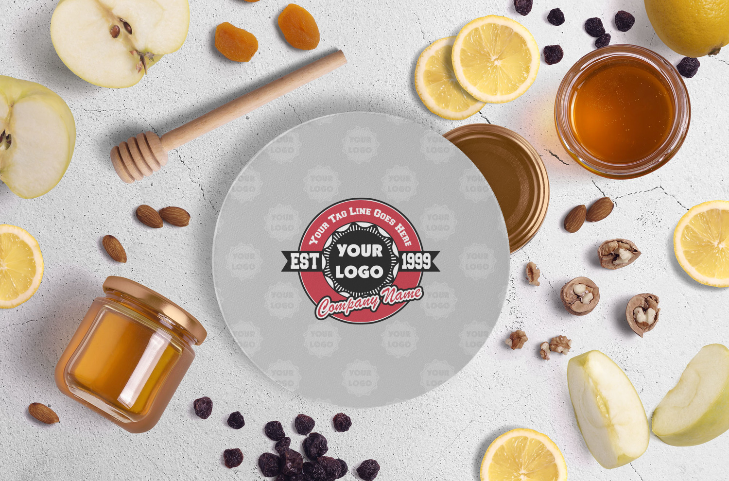 This design has black, red, and grey as its main colors, which are able to be changed to your company colors with a click of a button. You are able to upload your logo right into our system in order to use it. We have set up a fun company logo that you are even able to simply add your logo to. The background has a subtle logo pattern, which you can upload as a png or svg of your own logo. All colors, graphics, and text are changable in order to suit your personal business. Use your logo and your tagline on all kinds of products to get your business known.