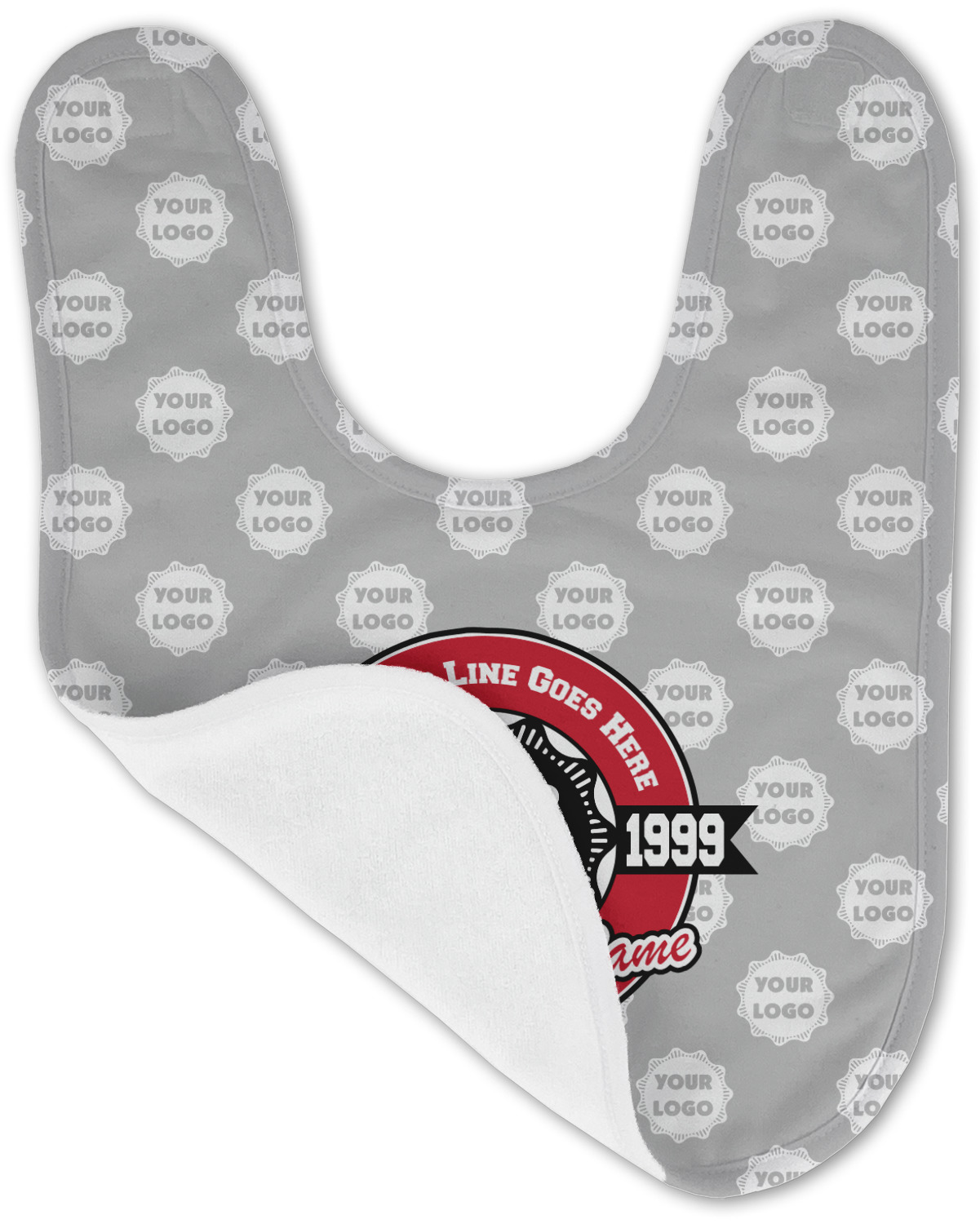 Made of soft polyester, each customizable bib hugs comfortably around the neck to catch every drip and drool. Each bib design is printed with baby-safe ink and finished with a secure stitch pattern and velcro clasp. We carry two customizable bib styles -Microfiber Velour and Jersey Knit.