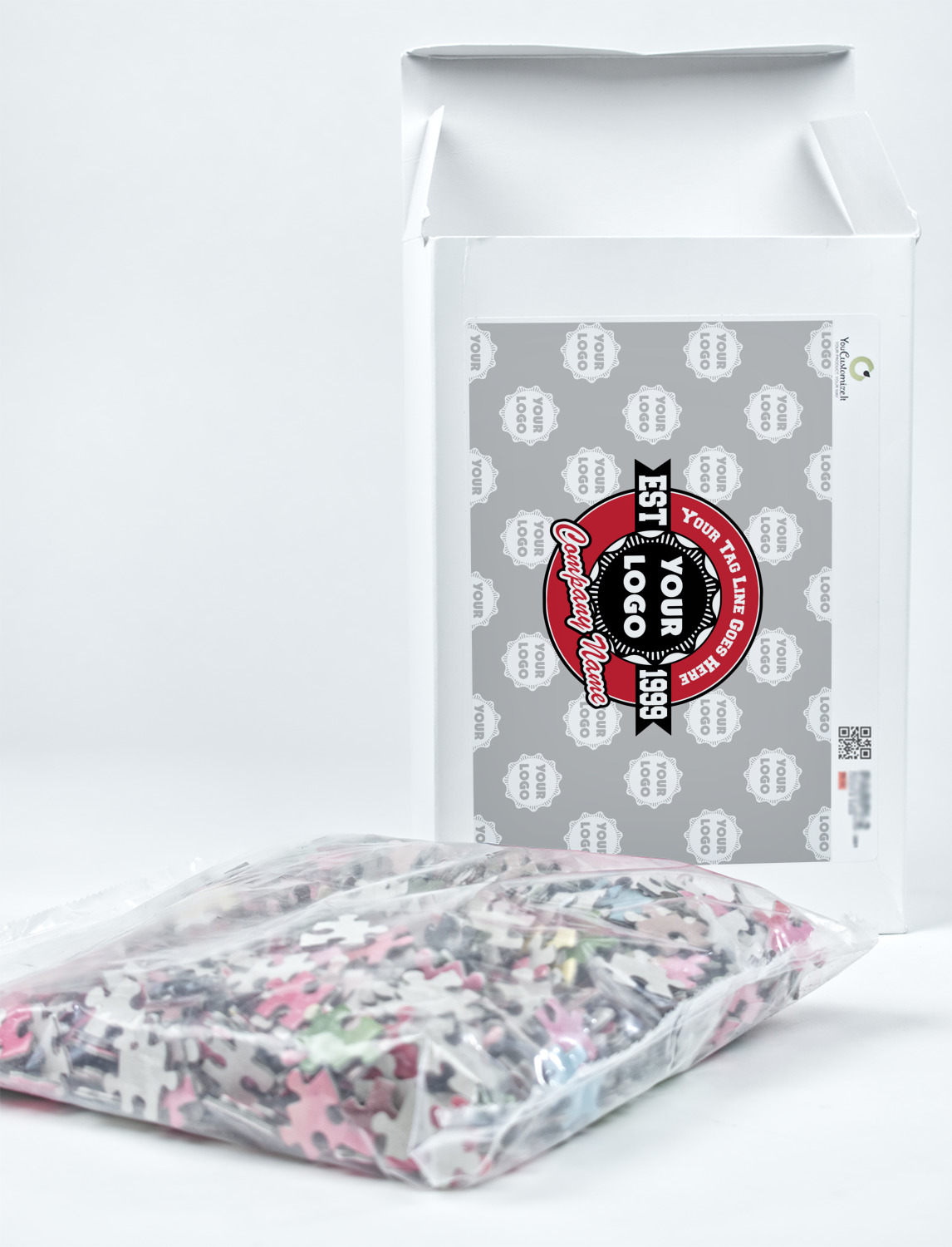 You can also upload your logo or art that you or your kids drew. To create more challenging jigsaw puzzles, you can create a pattern from with your logo or artwork. You can also add other elements such as text or personalization.