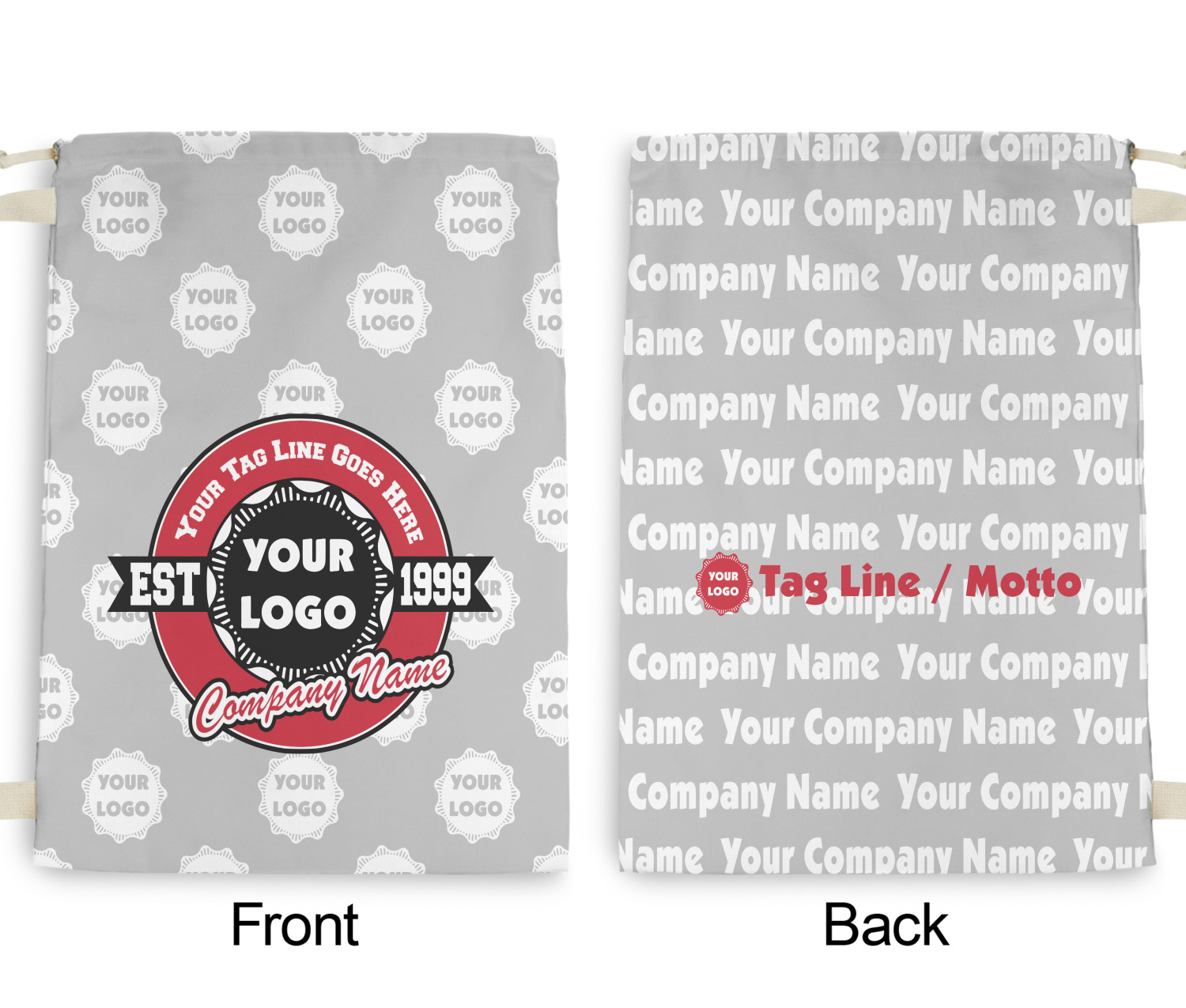 This design has black, red, and grey as its main colors, which are able to be changed to your company colors with a click of a button. You are able to upload your logo right into our system in order to use it. We have set up a fun company logo that you are even able to simply add your logo to. The background has a subtle logo pattern, which you can upload as a png or svg of your own logo. All colors, graphics, and text are changable in order to suit your personal business. Use your logo and your tagline on all kinds of products to get your business known.