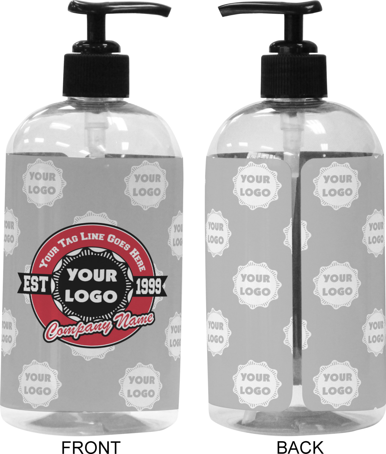 We adhere and wrap your custom printed design around the clear plastic bottle; there is a slight gap at the back for you to see the liquid level. Your design is printed on high gloss vinyl with eco-solvent inks and completely waterproof and will not fade or deteriorate over time. The vinyl is machine cut and adhered by hand to the clear plastic bottle.