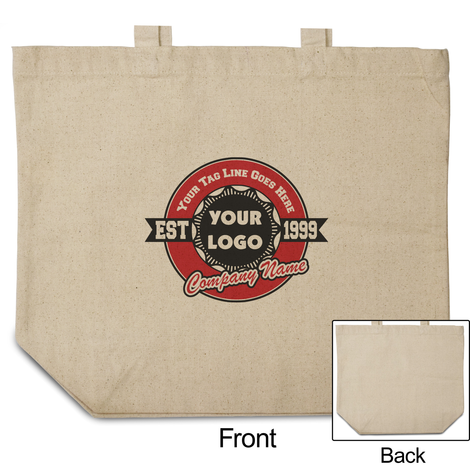 These cotton totes are washable and easy to care for, and they can be folded flat for storage. Your artwork, logo, or photo is printed in full color directly on the cotton tote in the front.