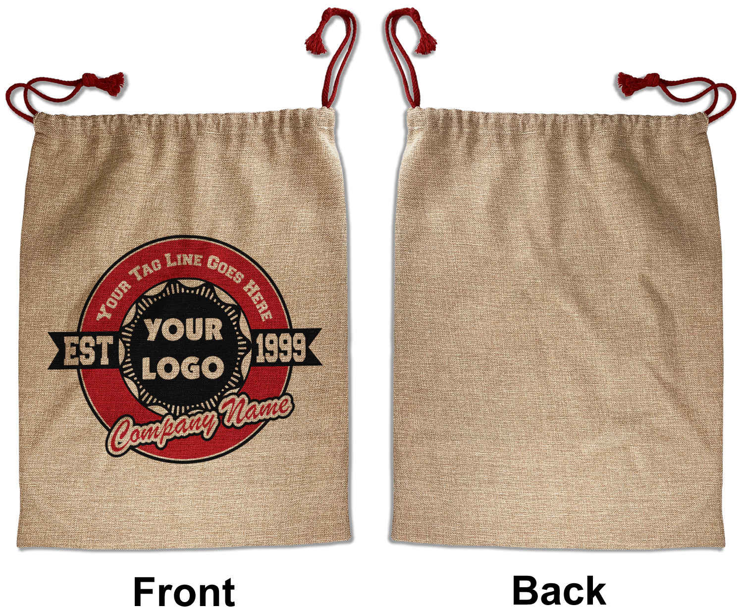 Our Santa sacks print your design on the burlap material giving it a nice rustic, natural design! The burlap material is also machine washable and wrinkle-free, so feel free to fold and store out Santa bags until the next time you need it! Secure your gifts with our red accent drawstring ties at the top of the sack so the mystery of your gift stays a surprise until Christmas day. We offer two types of printing- one side partial print or double-sided partial printing. Design and personalize your own Santa sack in time for the holidays!