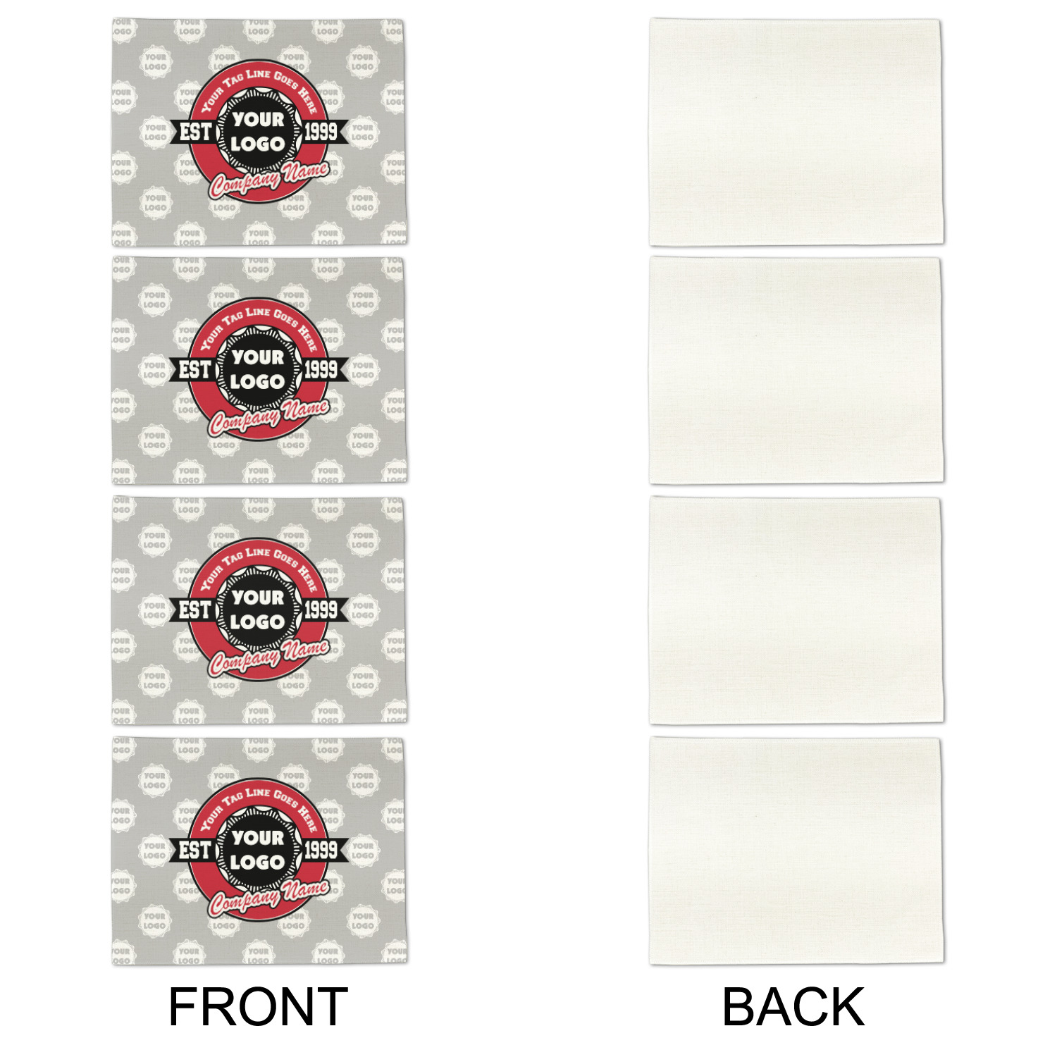 This design has black, red, and grey as its main colors, which are able to be changed to your company colors with a click of a button. You are able to upload your logo right into our system in order to use it. We have set up a fun company logo that you are even able to simply add your logo to. The background has a subtle logo pattern, which you can upload as a png or svg of your own logo. All colors, graphics, and text are changable in order to suit your personal business. Use your logo and your tagline on all kinds of products to get your business known.