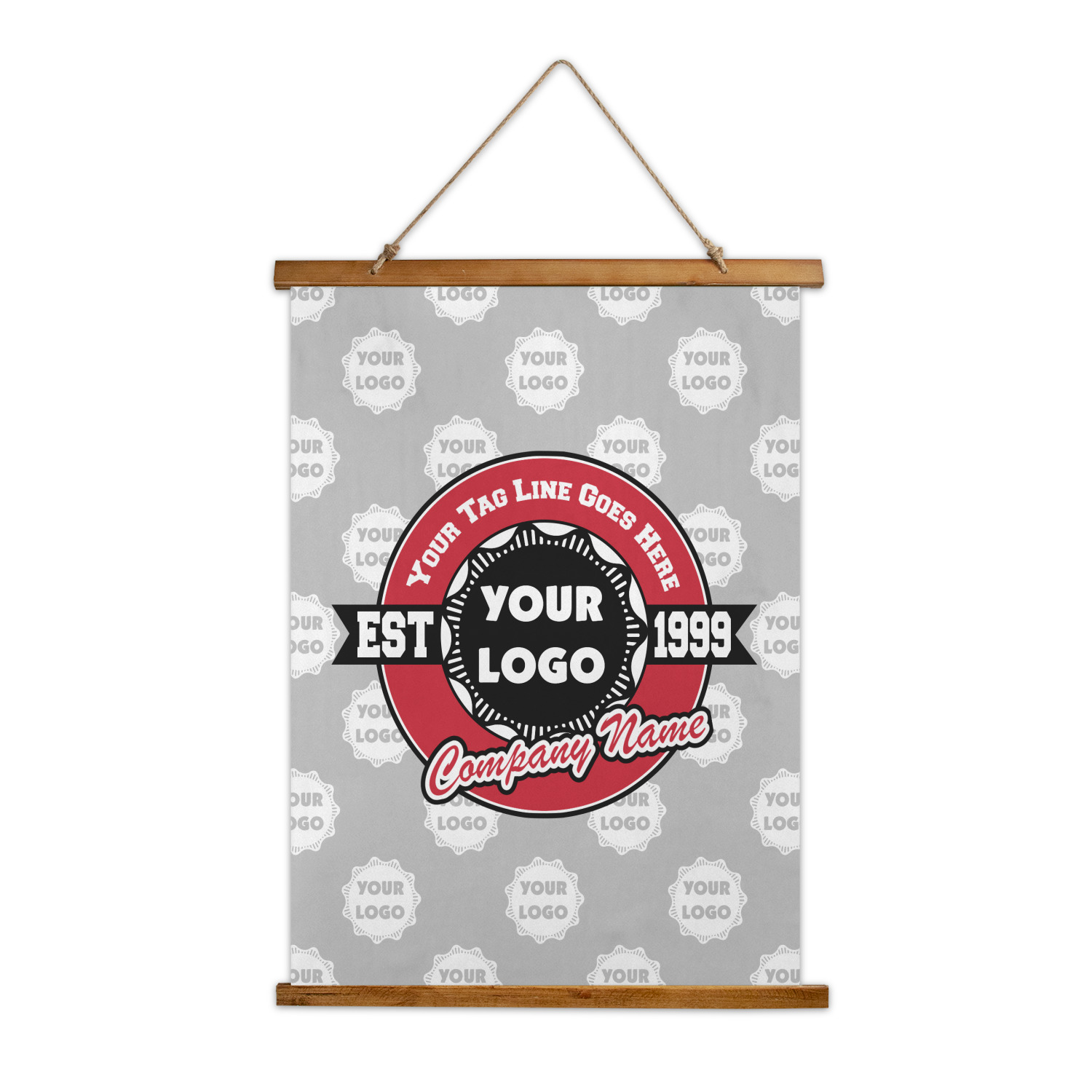 This design has black, red, and grey as its main colors, which are able to be changed to your company colors with a click of a button. You are able to upload your logo right into our system in order to use it. We have set up a fun company logo that you are even able to simply add your logo to. The background has a subtle logo pattern, which you can upload as a png or svg of your own logo. All colors, graphics, and text are changable in order to suit your personal business. Use your logo and your tagline on all kinds of products to get your business known.