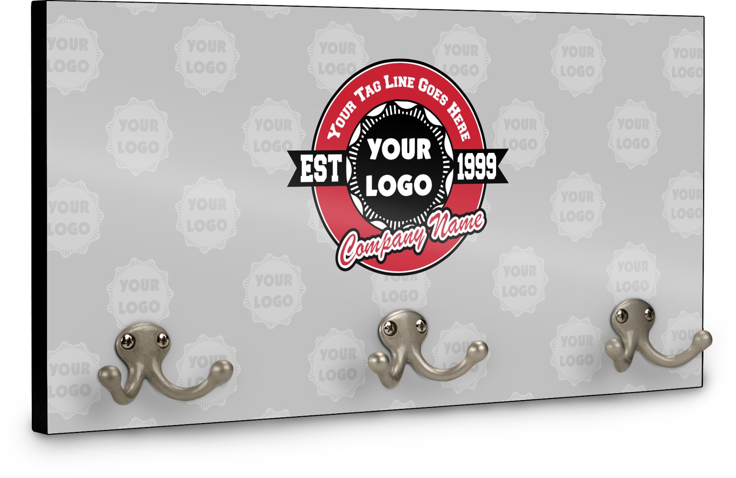 This coat rack is the perfect way to add some personality to your wall or entryway. The board is made of a strong maple that is approximately 16" x 8". The three 2-prong hooks are a sturdy metal that have three screws attaching them to the board. Your design is printed right onto the front of the board while the back and sides are a simple black.