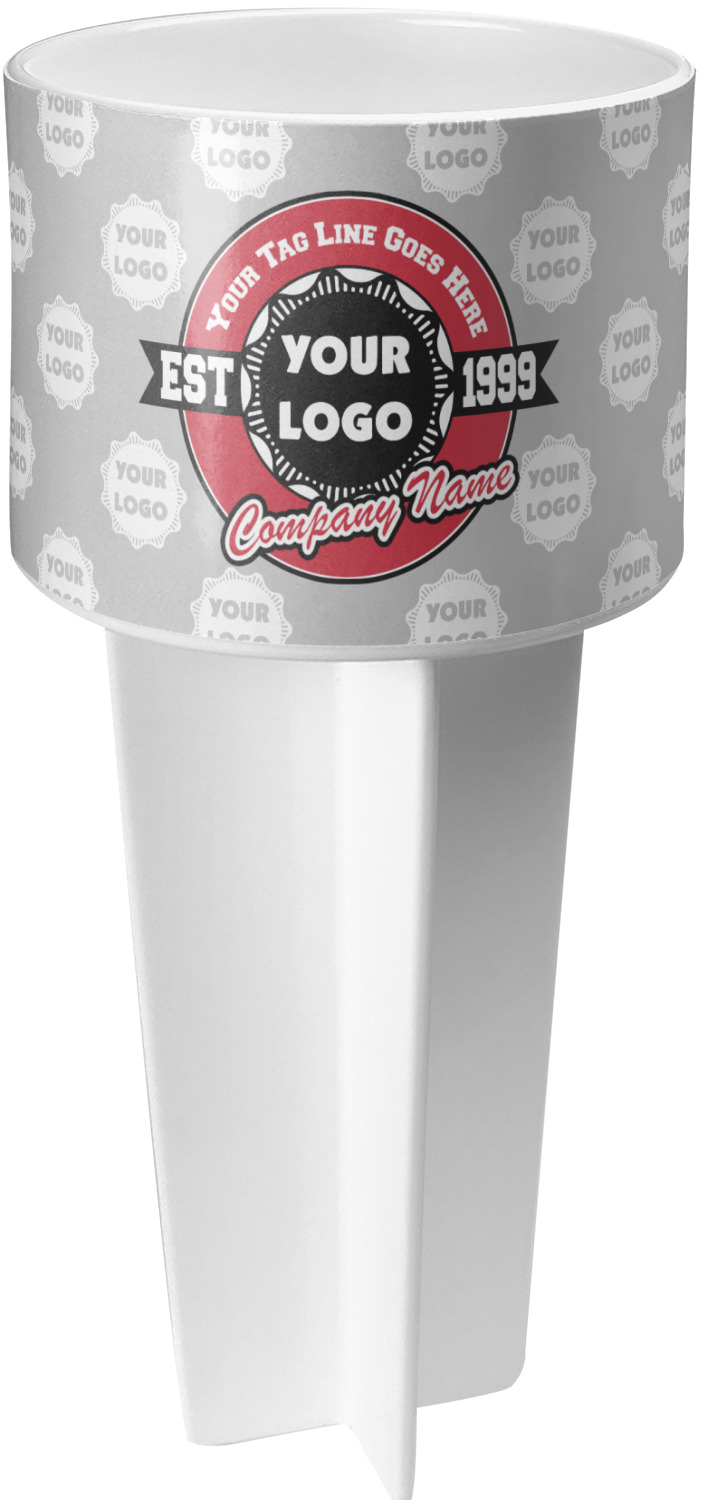 This cup holder has a large stake at its bottom that anchors it to the sand or ground below, while the cup holder rests above the stake. The entire drink holder is made of durable plastic and displays your customization around the cup holder portion. We sell these personalized beach spikers in two different colors: black and white.