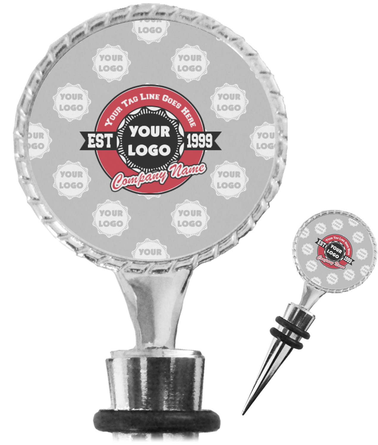 The top part of your bottle stopper is comprised of a zinc ring that displays your customization(s) in its middle, on both sides. The ring is heavy duty, with a bright chrome finish. The body of the wine stoppers have two silicone rings to provide an airtight seal. These wine bottle stoppers measure at 1.625" L x 0.8125" W x 4.625" H; your custom wine stopper is meant to fit into most standard-sized wine bottles.