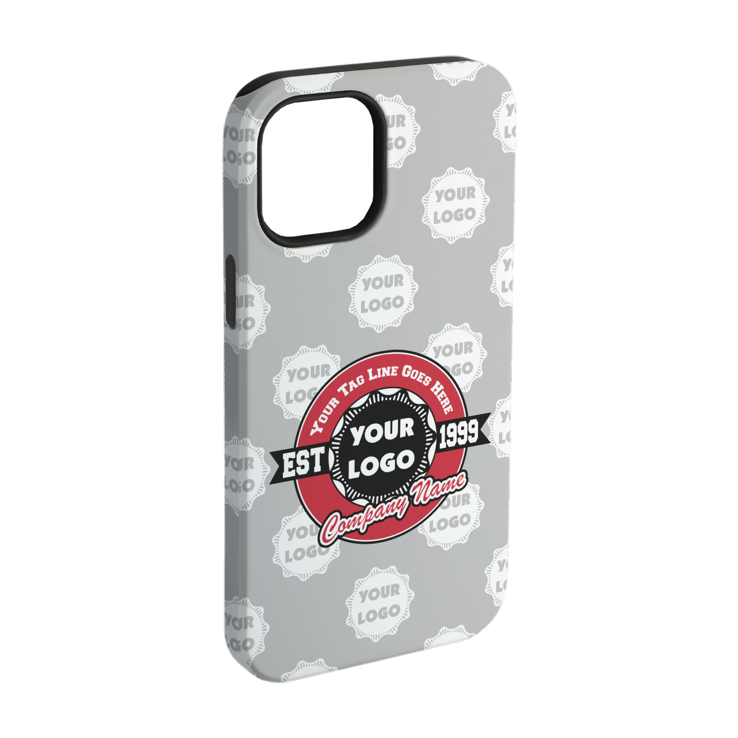 This design has black, red, and grey as its main colors, which are able to be changed to your company colors with a click of a button. You are able to upload your logo right into our system in order to use it. We have set up a fun company logo that you are even able to simply add your logo to. The background has a subtle logo pattern, which you can upload as a png or svg of your own logo. All colors, graphics, and text are changable in order to suit your personal business. Use your logo and your tagline on all kinds of products to get your business known.