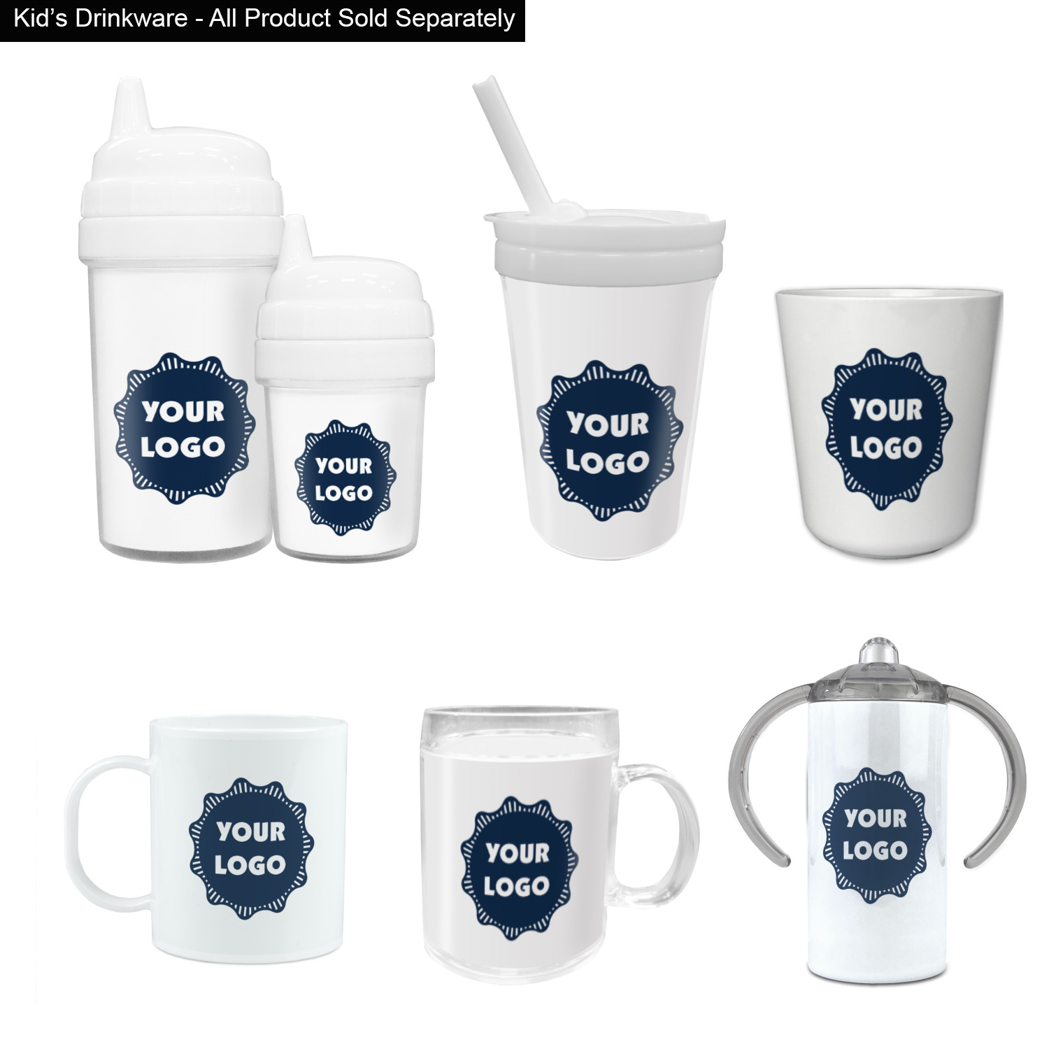 Our toddler cups are free of BPA, and have a twist-open lid so that you can easily fill and clean these cups for your young ones. Each cup also comes with a sippy nozzle to reduce spills. We offer these custom sippy cups in two different sizes; we have a baby sippy cup that holds 5 ounces, and a toddler sippy cup that holds 10 ounces. Your customization is printed on a premium glossy media insert that is placed within these toddler drinking cups.