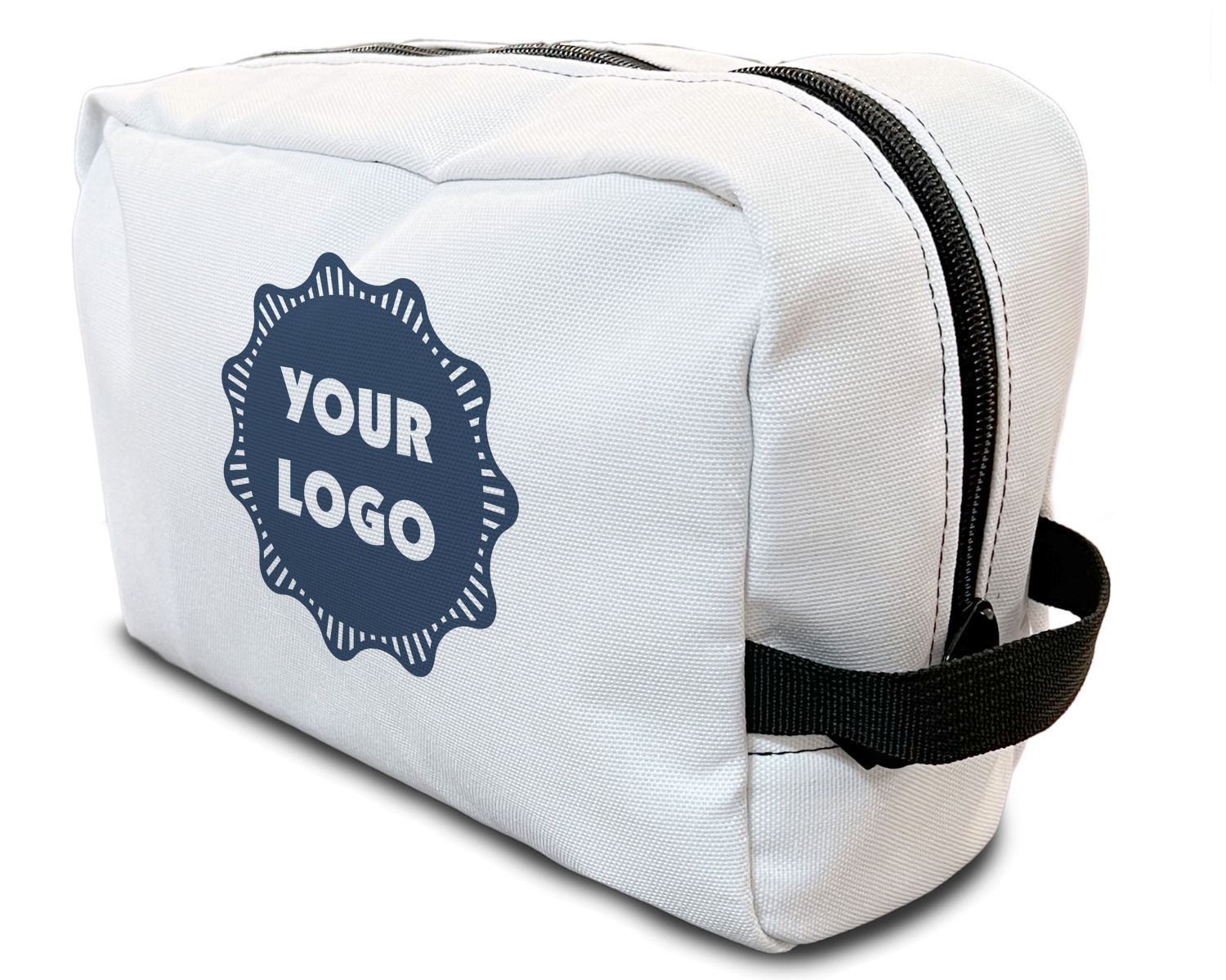 Our toiletry bag has the traditional dopp kit design i.e. a side to side zippered closure, giving you easy access to all the contents inside and a sturdy handle on one side of the bag. The canvas fabric for dopp kits is printed, then cut and sewn here in the USA.