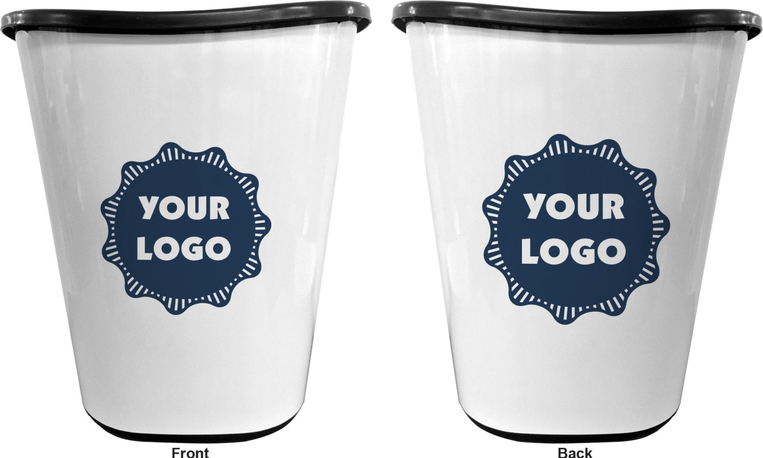 You can choose to purchase these decorative wastebaskets in either a white or a black color that will show on the base and the upper rim. Your customization is printed on a high-gloss, fine-quality vinyl adhesive, and you can choose to either have this adhesive applied to one side only or to both sides. As such, this plastic wastebasket can be single-sided or double-sided, depending on your creative vision. Your customization is printed using durable inks, making the design waterproof and resistant to fading over time.