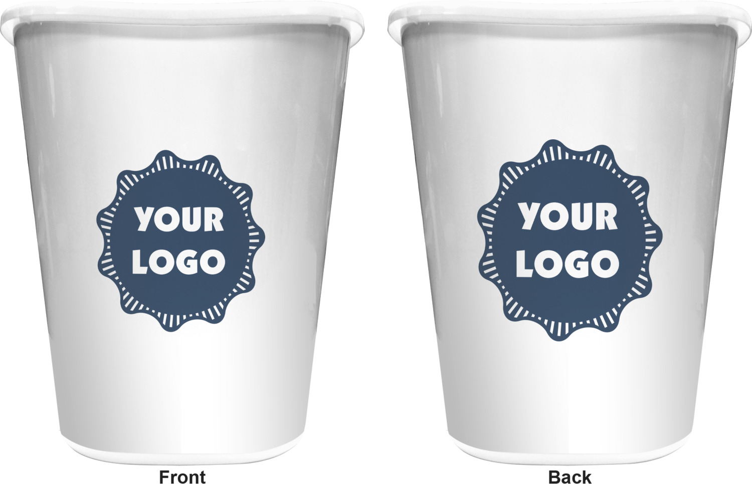 You can choose to purchase these decorative wastebaskets in either a white or a black color that will show on the base and the upper rim. Your customization is printed on a high-gloss, fine-quality vinyl adhesive, and you can choose to either have this adhesive applied to one side only or to both sides. As such, this plastic wastebasket can be single-sided or double-sided, depending on your creative vision. Your customization is printed using durable inks, making the design waterproof and resistant to fading over time.