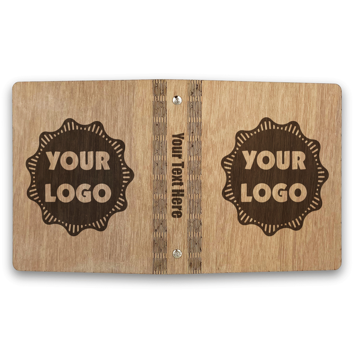 Made from premium hardwood, these are laser engraved then polished with wax to give a nice sheen and smooth feel to the product. The inside of the binders are finished with a faux leather material which is bonded to the inside of the wood to strengthen the wood and give the inside the same refined finish. The rustic brown and gold leather material adds a nice classic touch to the binders.