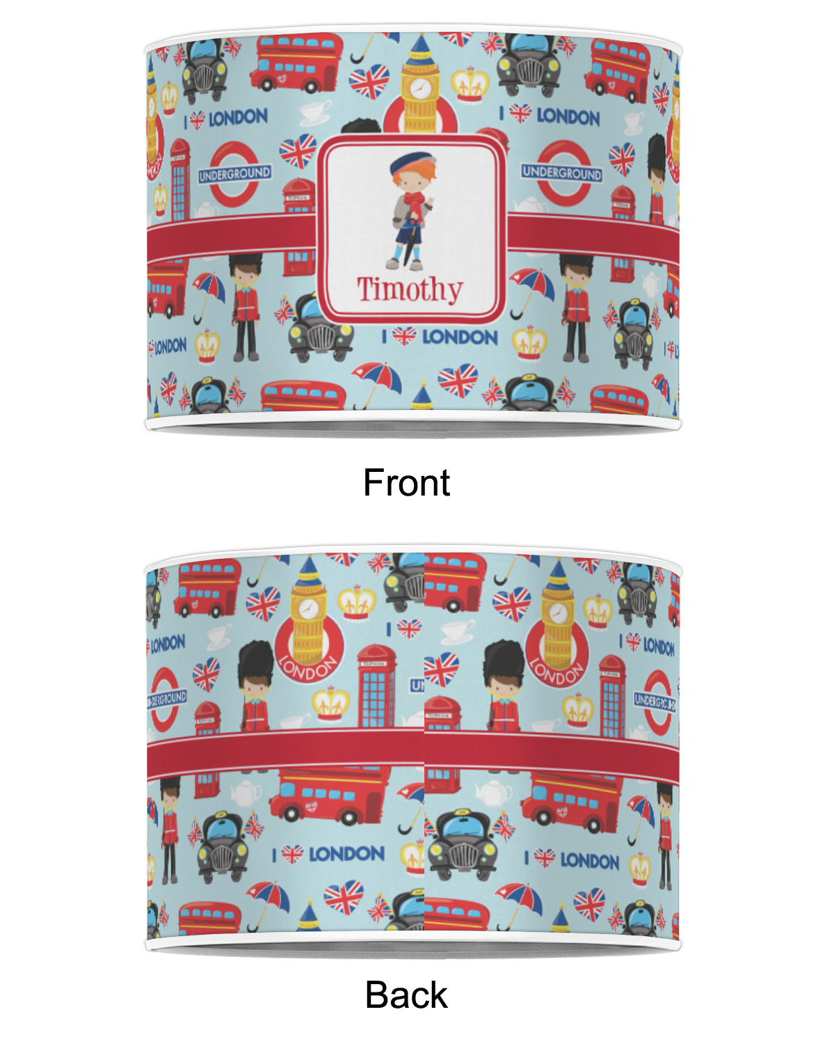 Our customized lamp shades also come in 3 different sizes: 8", 12" and 16", measuring at 8" in diameter by 6" tall, 12" in diameter by 8" tall, and 16" in diameter by 10" tall, respectively.