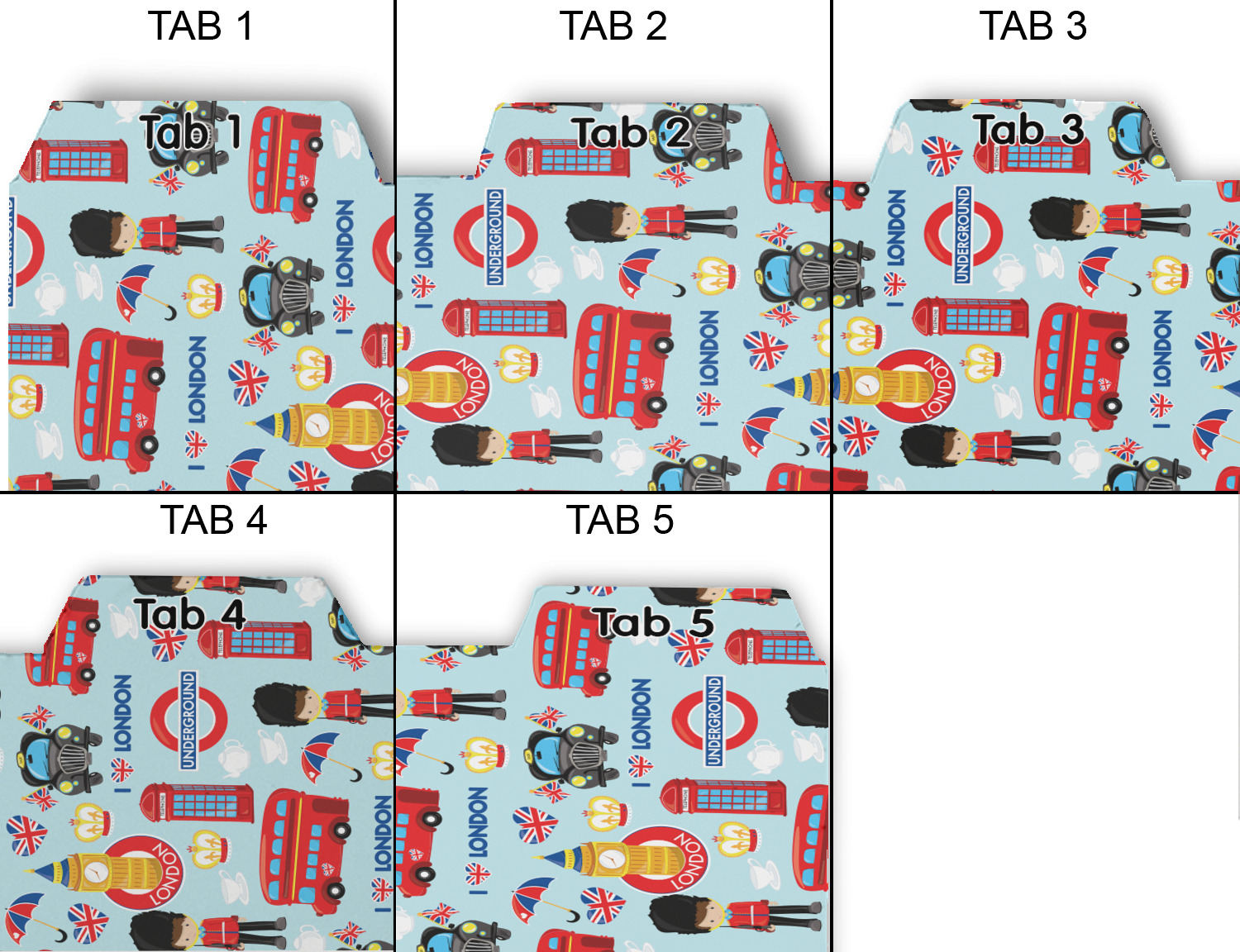 Whether you use binders at school or at work, we have designs to suit all of them. Available in 5 or 6 tab sets, you are sure to find a set to suit your needs. The back of each one is white and can be used to take notes, write vital information on, etc.