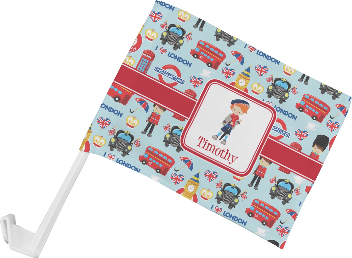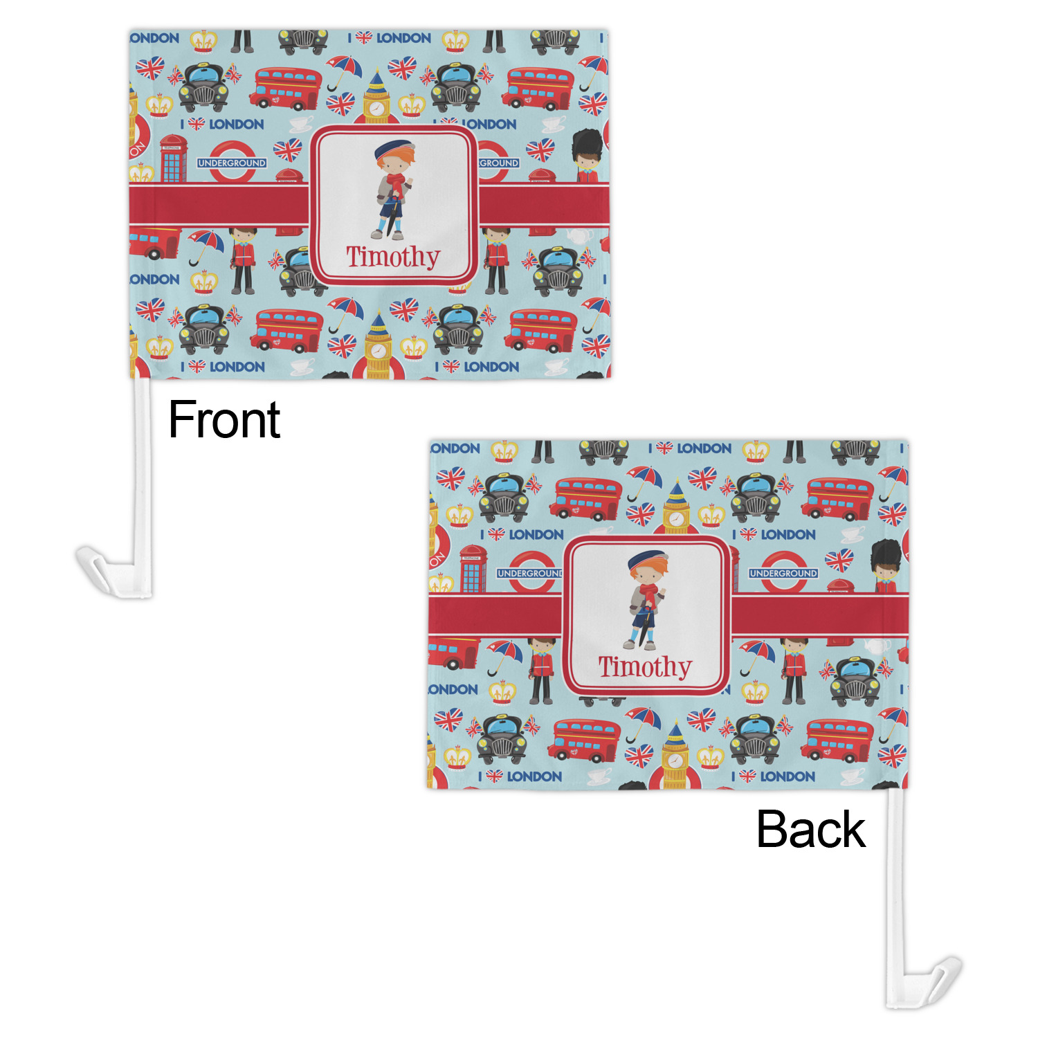 Our personalized flags are made from a durable, yet lightweight cloth that will proudly bear your logo or design of choice, while withstanding the outside elements. We have two size options - 8" x 11" and 11" x 15". Both come with a flag pole which includes a clip that secures the pole to the side window, whether it is rolled up or down. The flags are printed on both sides to display your design from all directions.