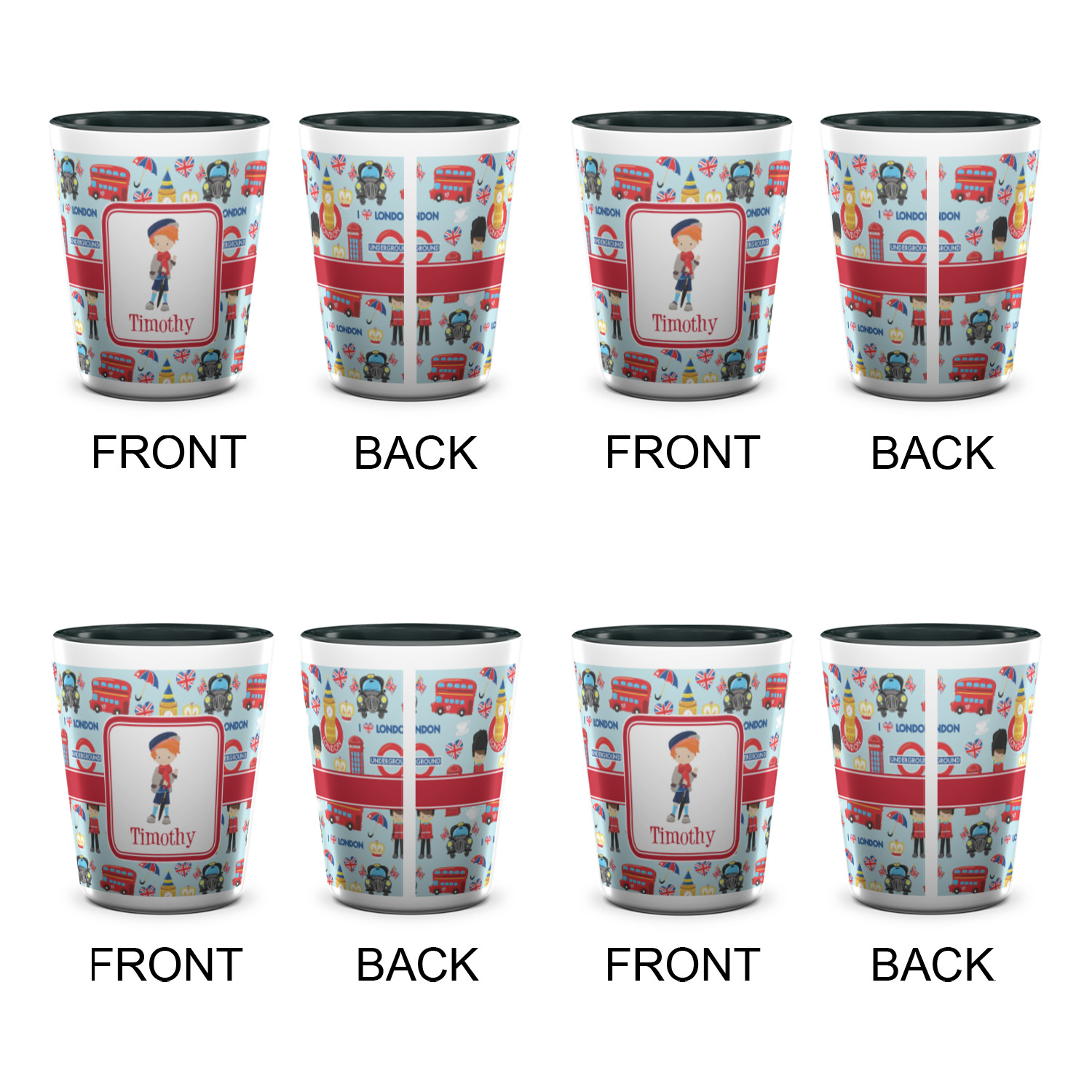 Made from ceramic these shot glasses are printed in full color with the design of your choice. These are a standard 1.5oz size and stand 2.25" tall. Available in a full white ceramic or a two-tone with a black color inside the shot glass. Buy a single or a set of 4, all of which can be designed separately to get you just what you want and need.