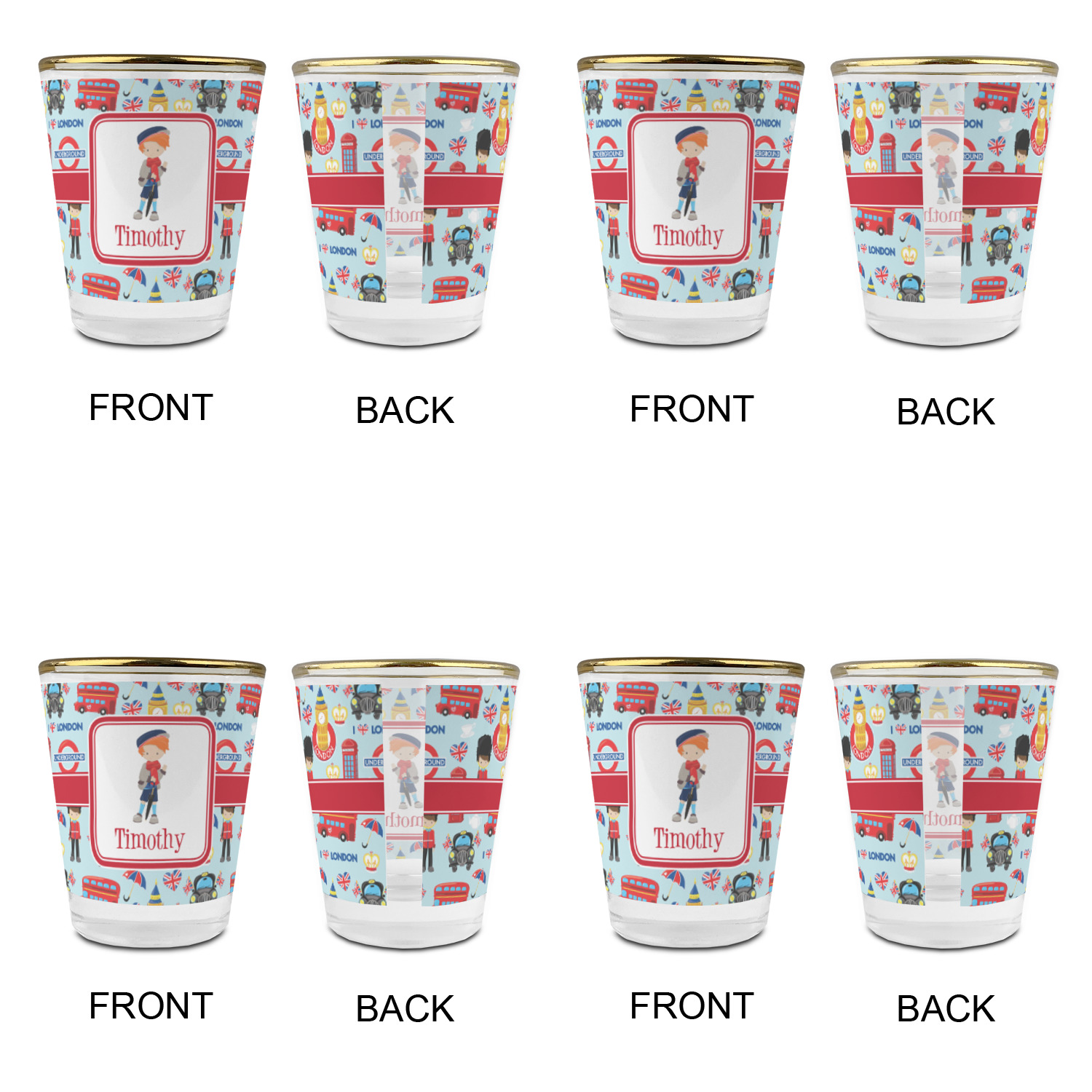 Made with frosted glass, these shot glasses are printed in full color with the design of your choice. They are a standard 1.5oz shot glass and are 2.4" tall. The print is wrapped around the shot glass in a full wrap and boldly displays your customization.