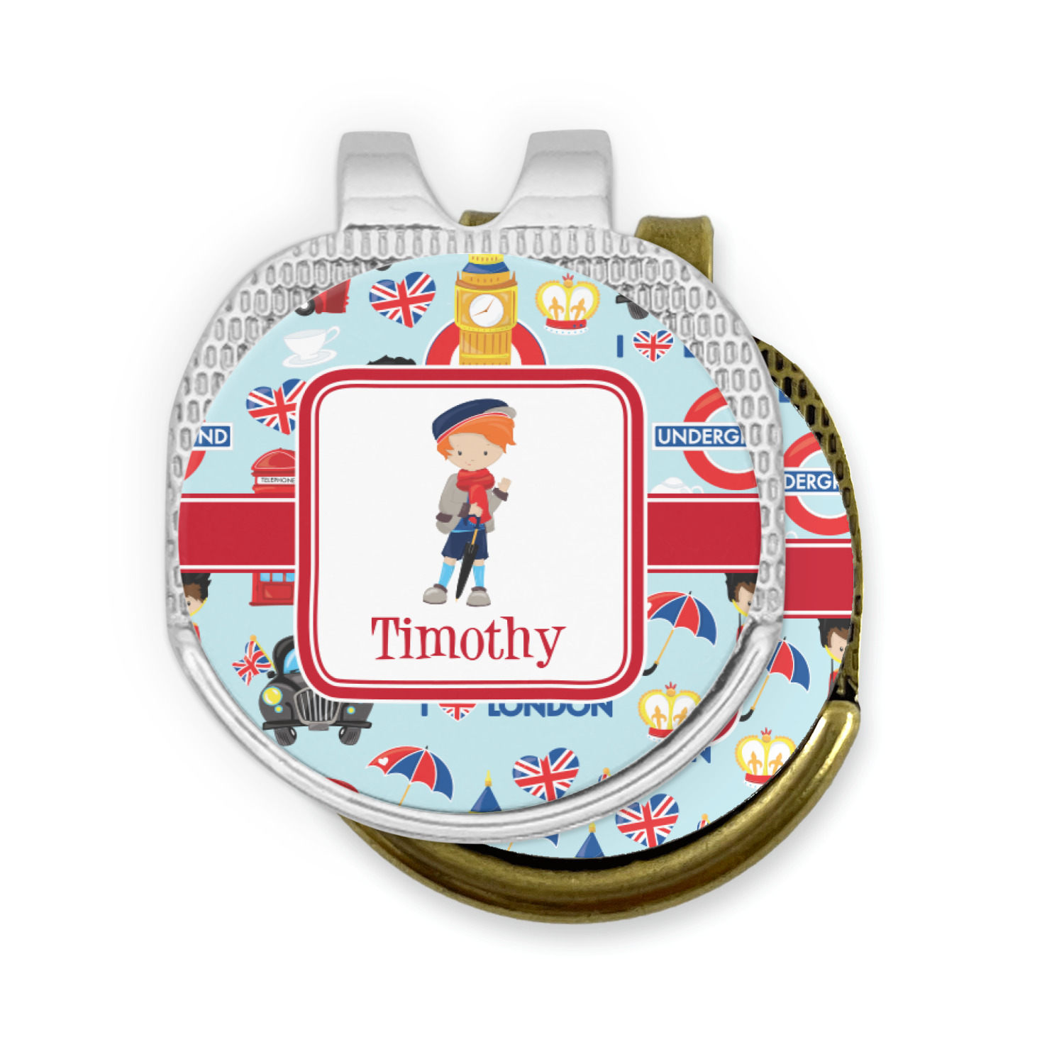 This round shaped little clip is simply 1.25" x 1.5". A clip wraps around to the back of the ball marker holder in order to be able to clip it to the bill of your hat or even your belt. The metal ball marker attaches by a magnet on the clip. Available in stainless steel natural finish or gold finish, you are sure to find one to suit your style. This makes for convenient removal when you need to use it. No more digging in your bag or pockets trying to find it!