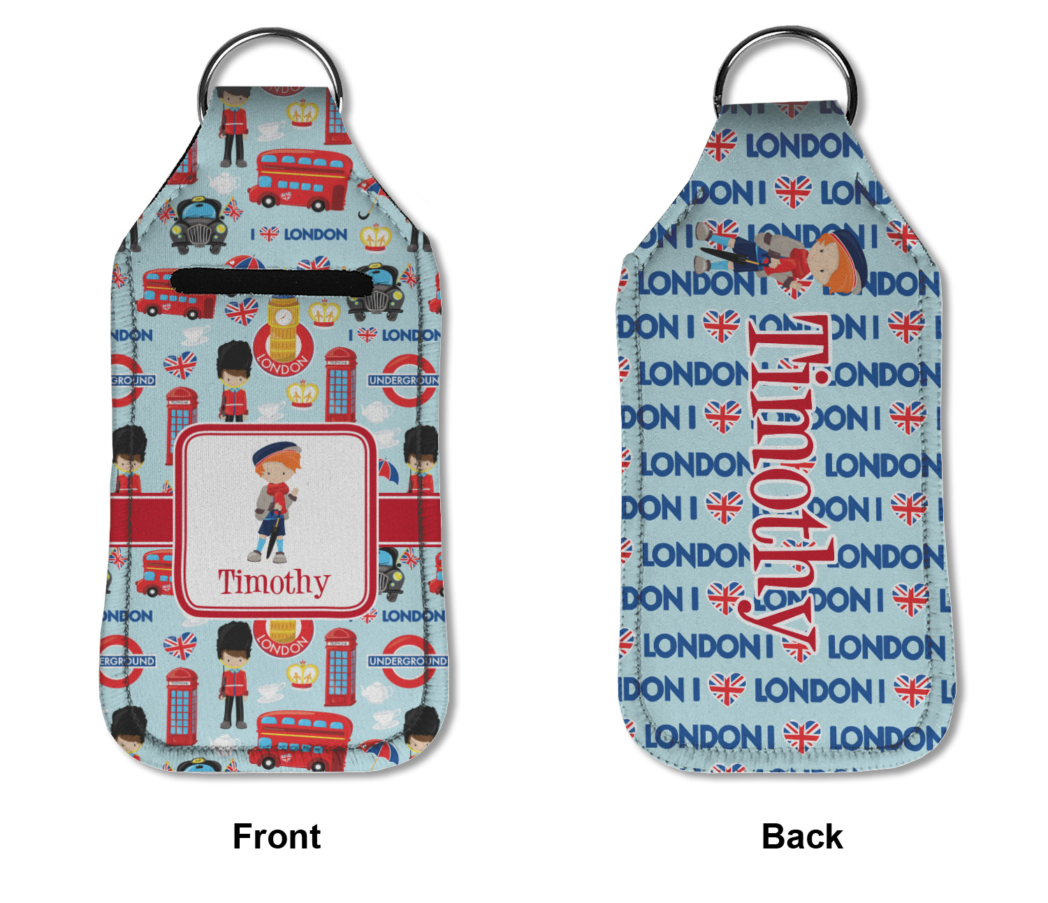 Each hand sanitizer holder comes with its own empty travel-sized, refillable hand sanitizer sure to fit snug in your customized sanitizer case! Our hand sanitizer cases are a durable, yet soft neoprene material sure to last any daily activities or travel agenda. Customize and personalize a hand sanitizer bottle holder with one of our two sizes - small (4.25" x 2.25") or large (5.5" x 2.5"). Each travel sanitizer holder comes with a keyring for attachment on bags, keys, or more!