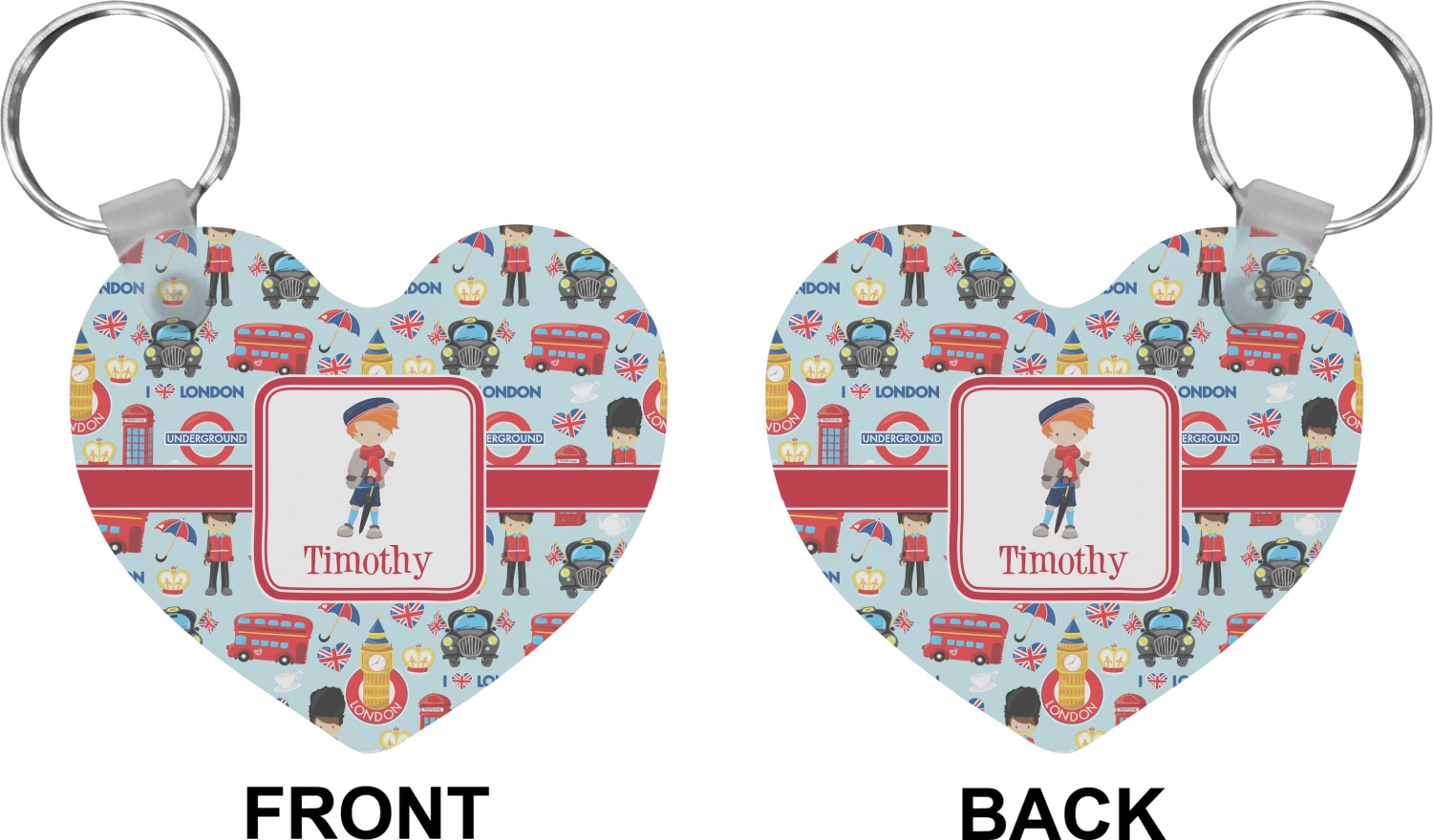 Our personalized keychains attach to the included metal, split key ring with a plastic, removable snap. Since a metal ring is included with your purchase, you have the liberty to keep your keys together on the ring, with or without your unique keychain. We offer this keychain in three different shapes: circle, heart, or diamond. We print your personalized design(s) on both sides of the key chain, and the surface has a glossy, reflective finish that only emphasizes your design. Each keychain is approximately 2.25 by 2.25 inches.