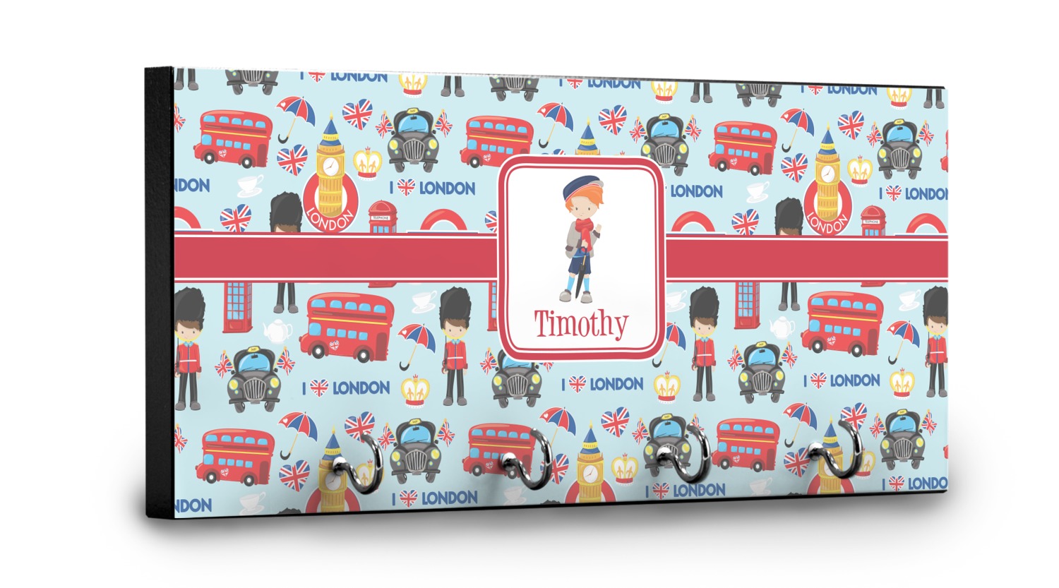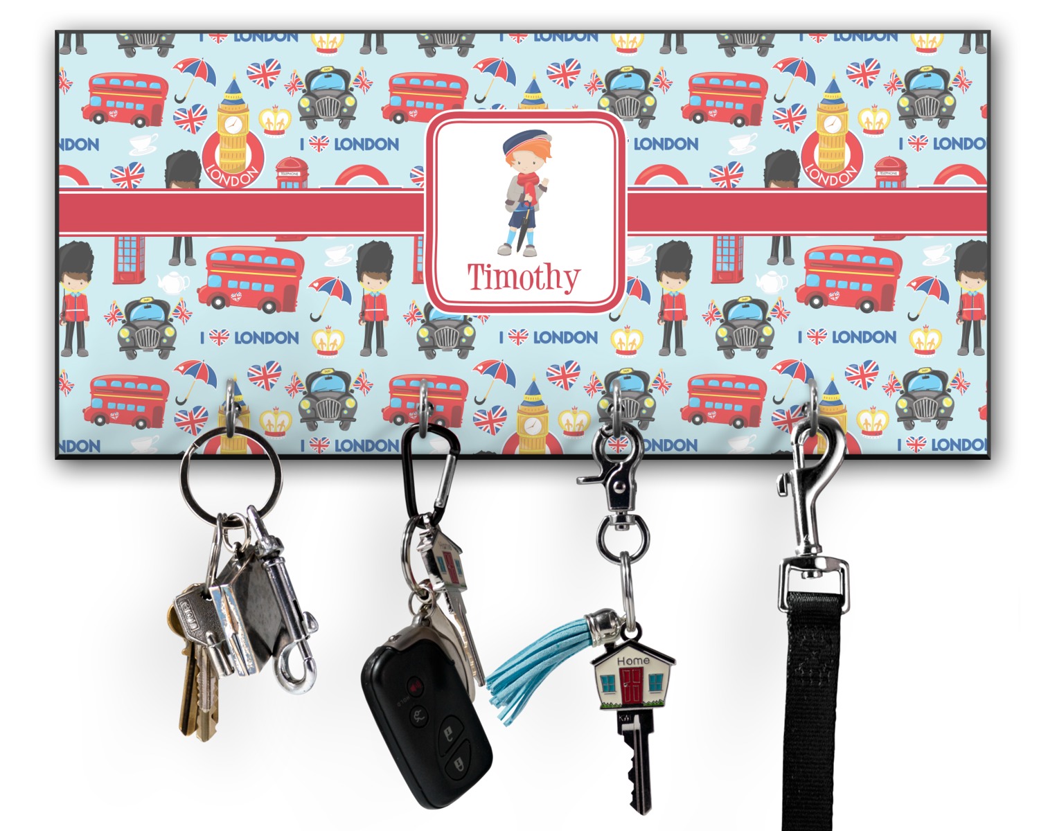 This 11" x 5" key hanger is made of sturdy wood and has four metal hooks lining the bottom. This is the perfect size for a family with several drivers. Not only can you hang keys on it though, but pet leashes and other small items. The board is black on the sides and back and is printed with the design of your choice on the front.