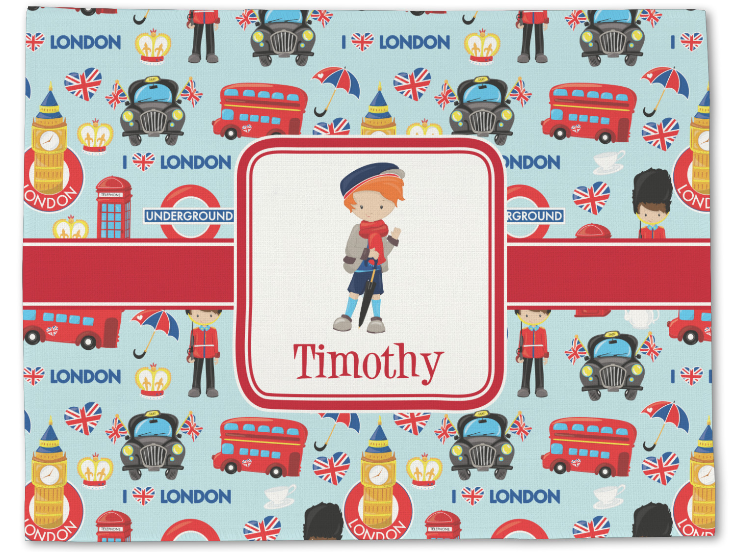 Ah, London. The city of rain, tea, red double decker buses, the Union Jack, and the Queen. Featuring a stylish London boy or girl, this design is perfect for little ones who love to travel.