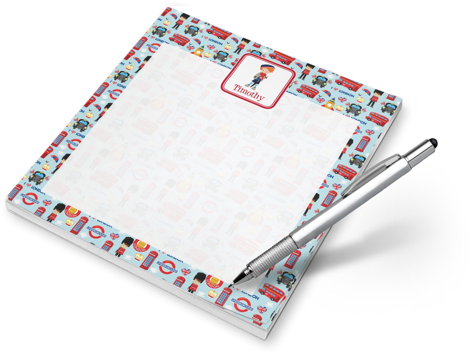 Your custom notepad features 50 sheets of thick, white paper, with your customization in the background and the edges. At approximately 6" x 5.5", these personalized memo pads are slightly larger than your average notepad. The individual notes tear easily from binding, which allows for quick, convenient, note-taking.