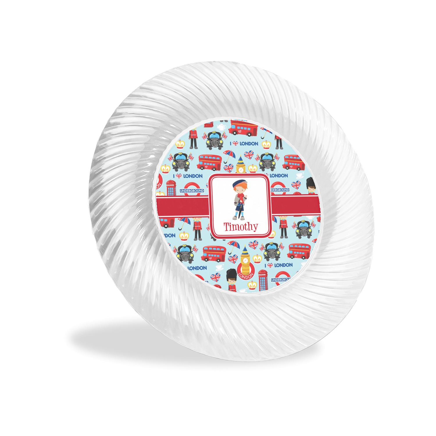 Made from a beautiful clear plastic plate as a base, your design is printed to the underside of the plate. The outside of the plate has a classic swirl texture to it for a high quality look and feel.