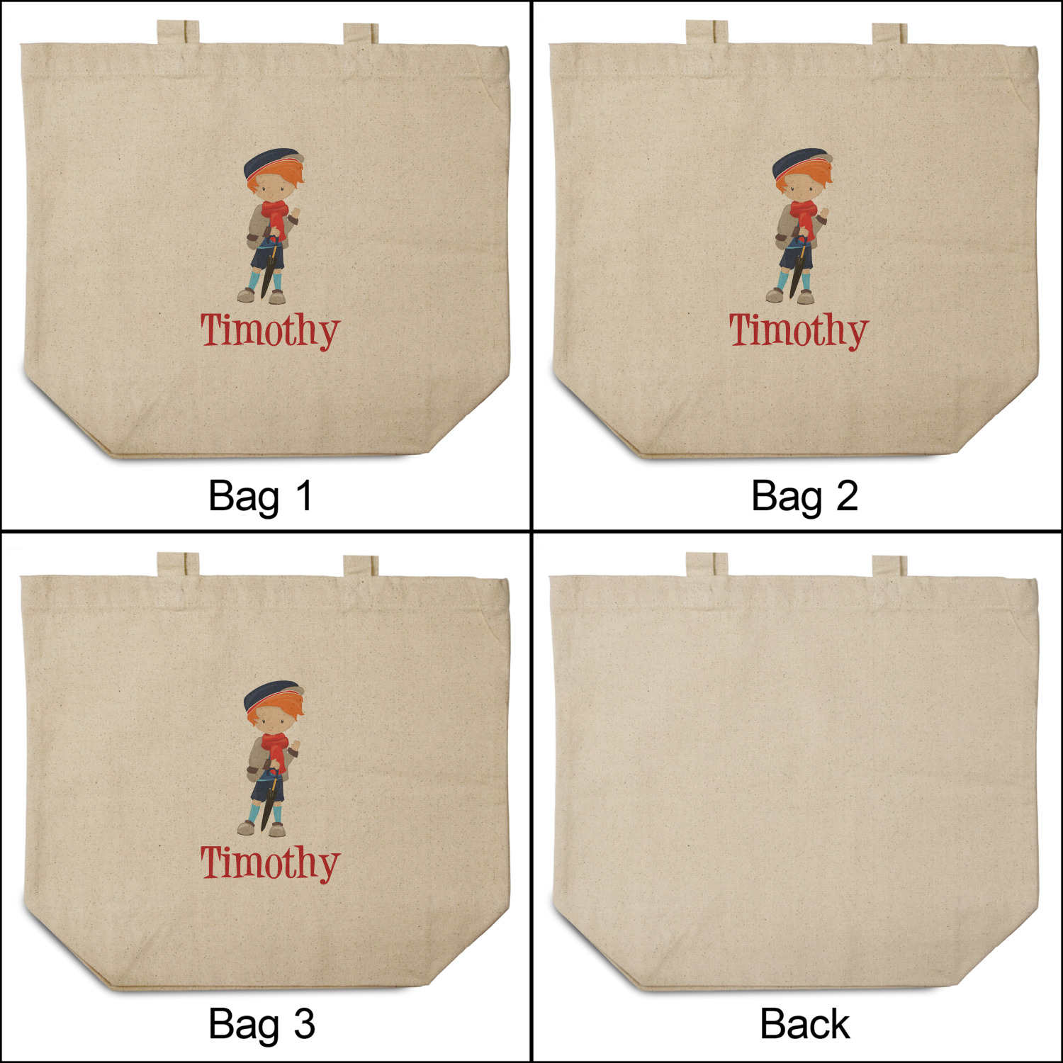 These cotton totes are washable and easy to care for, and they can be folded flat for storage. Your artwork, logo, or photo is printed in full color directly on the cotton tote in the front.