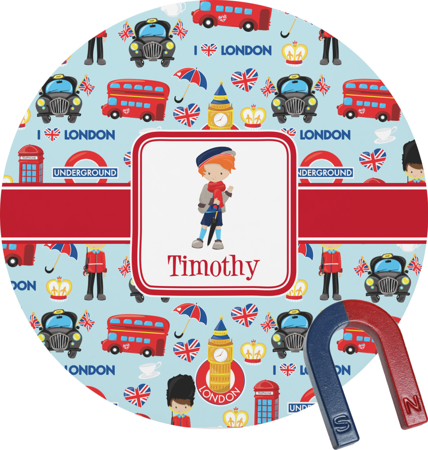 Ah, London. The city of rain, tea, red double decker buses, the Union Jack, and the Queen. Featuring a stylish London boy or girl, this design is perfect for little ones who love to travel.